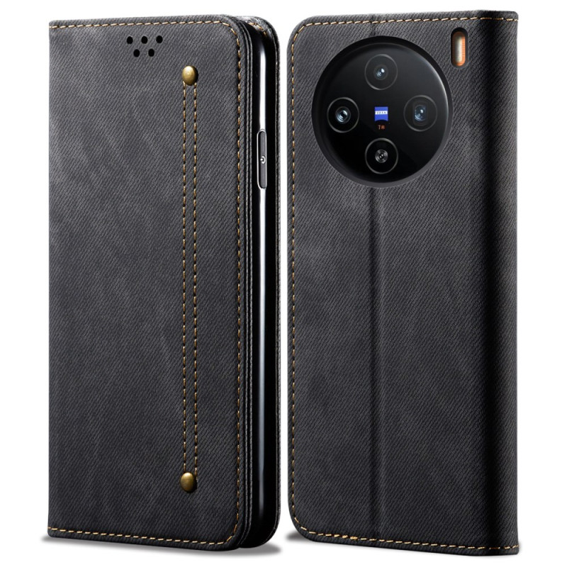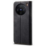 Schützen Sie Ihr Vivo X100 Pro 5G elegant mit dieser Brieftasche aus PU-Leder mit Jeans-Textur. Raffiniertes Retro-Design, integrierte Betrachtungshalterung, sicherer Magnetverschluss und Rundumschutz gegen Stürze.