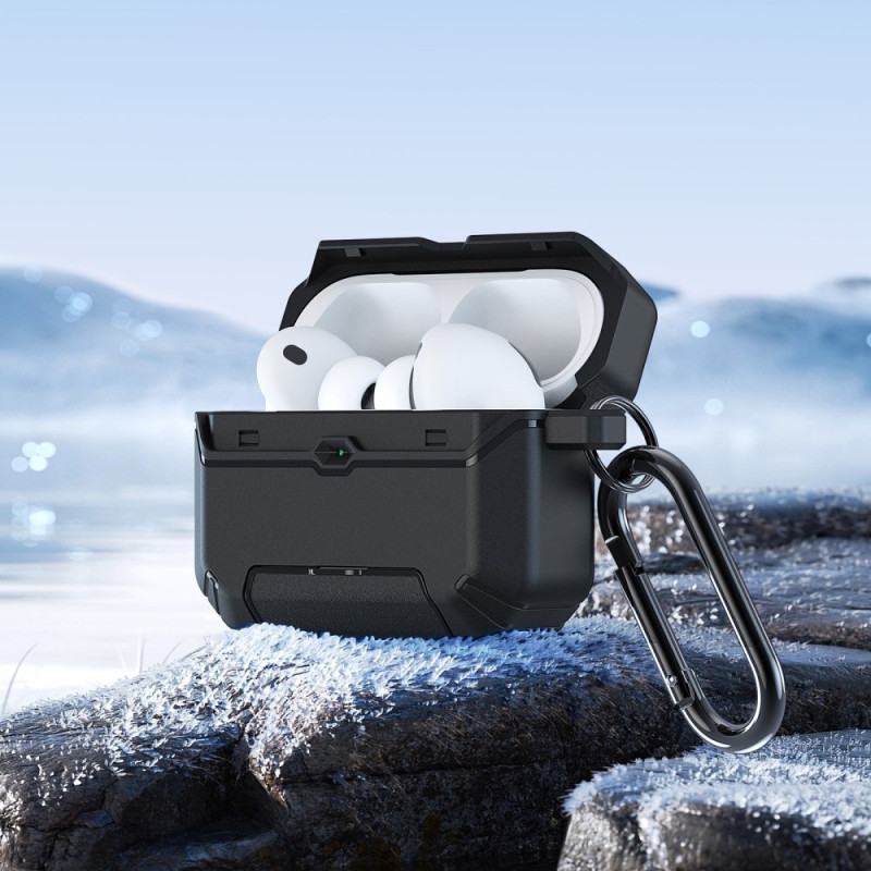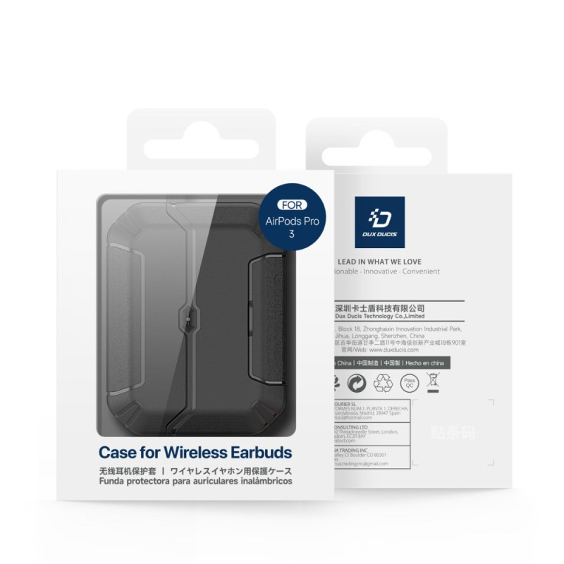 Entdecken Sie die DUX DUCIS PECS Hülle für AirPods Pro 3: doppellagiger Rundumschutz, integrierter Multipositionsständer für freihändigen Komfort, matte, spurlose Oberfläche und legierter Haken für bequemes Tragen. Innovatives, von der Natur inspiriertes Design.
