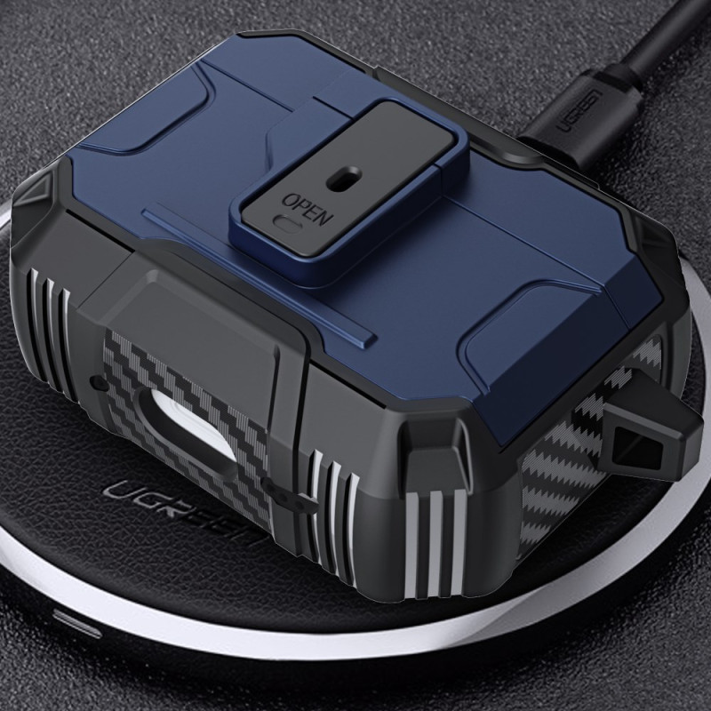 Schützen Sie Ihre AirPods Pro 3 stilvoll mit dieser stoßfesten Tasche. Das Design aus zwei Materialien ist robust und elegant, während der Mechanismus zum Öffnen mit einem Klick den täglichen Zugriff erleichtert. Inklusive eines praktischen Hakens für den Transport...