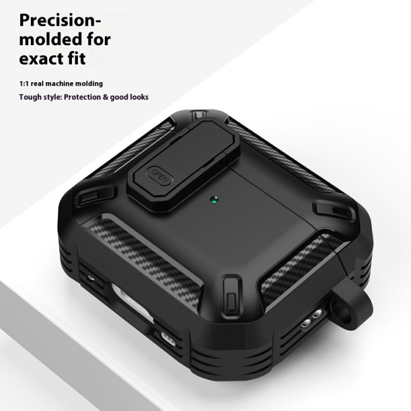 Schützen Sie Ihre AirPods Pro 3 mit dieser robusten, doppellagigen Schutzhülle. Elegantes und modernes Design, dieser Schutz bietet eine vollständige Verteidigung gegen Stöße, Kratzer und Stürze. Leicht und tragbar mit enthaltenem Karabinerhaken für einen einfachen Transport.