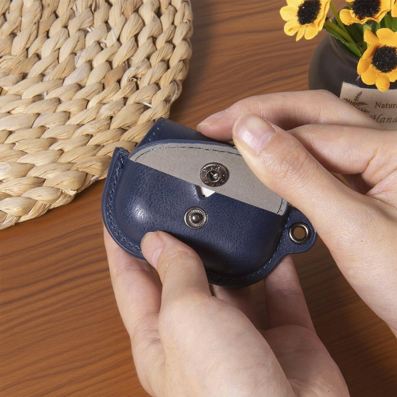 Schützen Sie Ihre AirPods Pro 3 Ladebox stilvoll mit dieser Ledertasche im Rucksackdesign. Sie bietet umfassenden Schutz vor Kratzern und Staub und vereint mit ihrem Knopfverschluss und Karabinerhaken Eleganz und Praktikabilität.