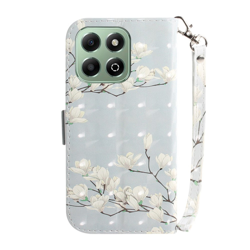 Schützen Sie Ihr Honor X6b 4G elegant mit dieser Brieftasche mit raffiniertem Magnolienmuster. Ausgestattet mit Kartenfächern, einem ausklappbaren Ständer für freihändiges Betrachten und einem sicheren Magnetverschluss.