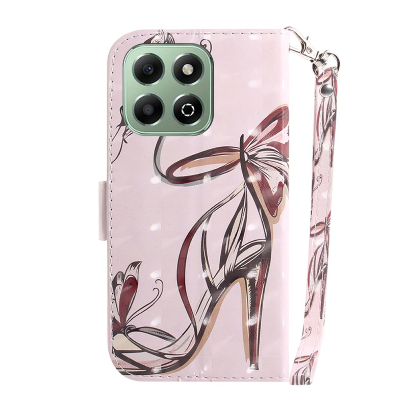 Elegante Brieftasche für Honor X6b 4G mit High-Heels- und Schmetterlingsmotiv. Verfügt über Kartenfächer, einen faltbaren Ständer, einen sicheren Magnetverschluss und eine praktische Handschlaufe. Optimaler Schutz, der Stil und Funktionalität vereint.