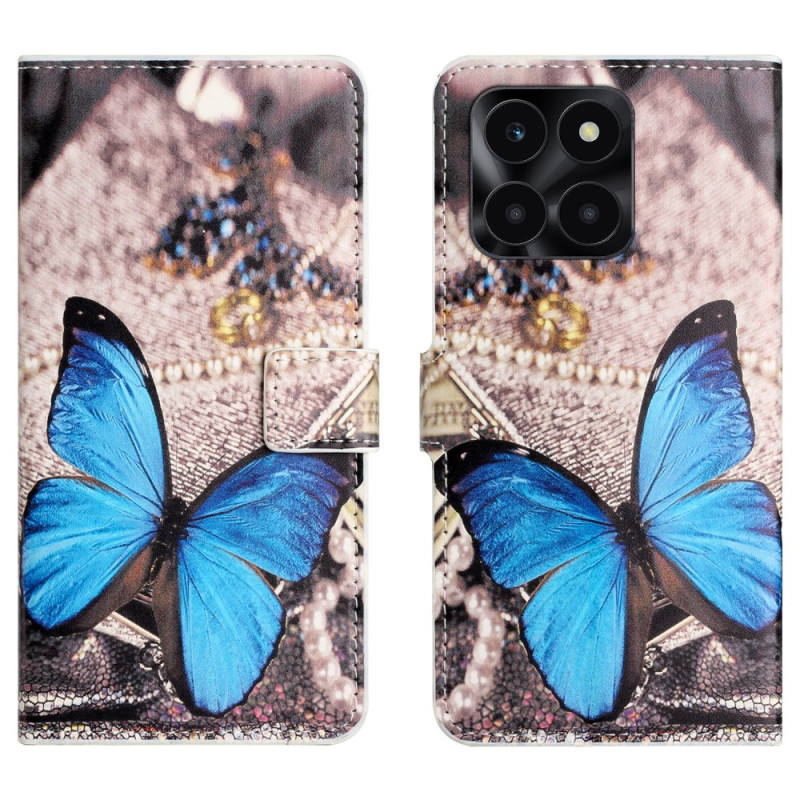 Schützen Sie Ihr Honor X6c 4G / X6b 4G / X6a 4G elegant mit dieser Brieftasche mit zauberhaftem blauen Schmetterlingsmuster. Ausgestattet mit einem sicheren Magnetverschluss, Kartenfächern und einer praktischen Freisprecheinrichtung.