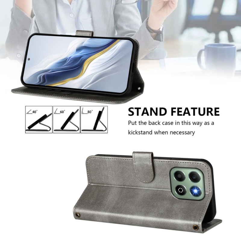 Schützen Sie Ihr Honor X6b 4G elegant mit dieser Brieftasche aus PU-Leder mit Retro-Textur. Mit mehreren Kartenfächern, einem verstellbaren Standfuß und einer praktischen Handschlaufe vereint es Stil und Funktionalität für umfassenden Schutz.