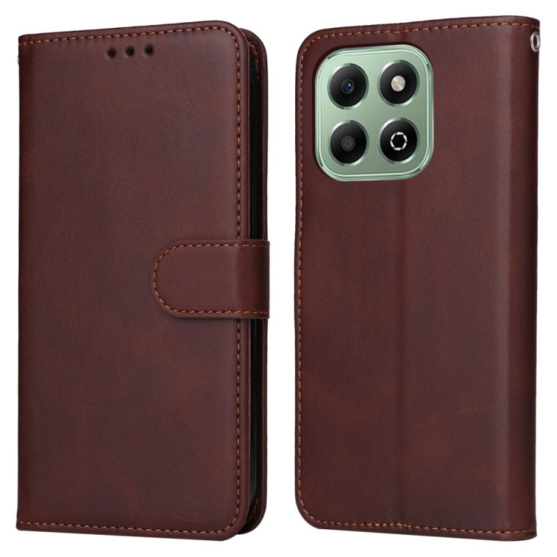 Étui élégant en cuir PU texturé pour Honor X6c 4G / X6b 4G. Design portefeuille avec fentes pour cartes et espèces, fonction support mains libres, fermeture magnétique sécurisée et dragonne pratique. Protection complète à 360° contre les chocs et les rayures.