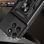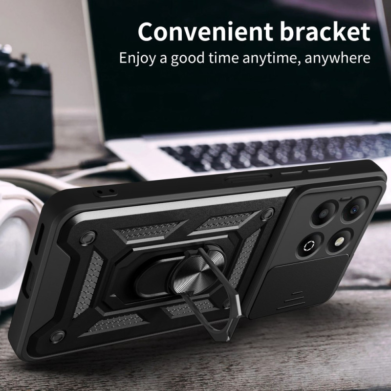 Schützen Sie Ihr Honor X6b 4G mit dieser robusten Hülle mit verschiebbarem Kameraschutz, drehbarem Multifunktionsständer und militärischer Stoßfestigkeit. Kompatibel mit magnetischen Halterungen für Autos.