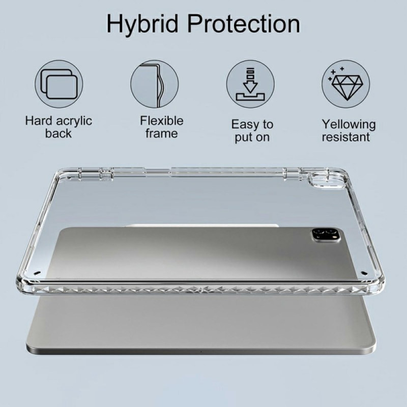 Entdecken Sie unsere elegante, transparente Hülle für das iPad Pro 11. Die Kombination aus kristallklarem Acryl und flexiblem TPU bietet optimalen Schutz vor Stößen und Stürzen. Mit verstärkten Ecken, präzisen Ausschnitten und voller Kompatibilität mit dem Apple Pencil ist diese schlanke und leichte Hülle der perfekte Begleiter für Ihr Tablet.