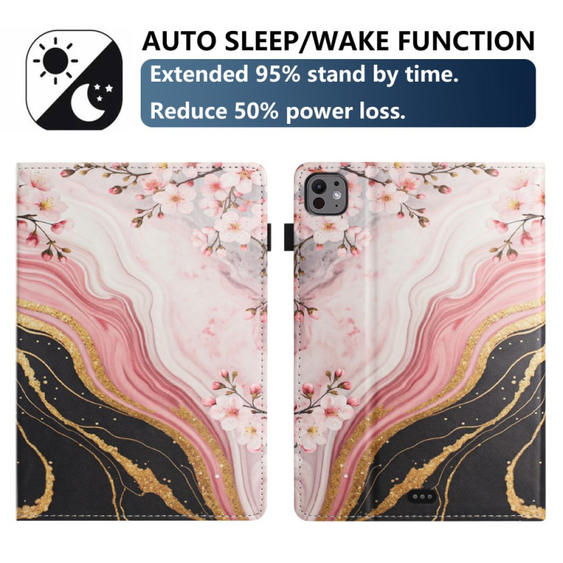 Entdecken Sie unsere elegante Hülle für das iPad Pro 11 (2025) / 11 (2024). Sie ist aus strukturiertem PU-Leder gefertigt und bietet mit ihrem einzigartigen Druckdesign einen umfassenden Schutz. Nutzen Sie den Multi-Winkel-Standfuß, die automatische Schlaf-/Wachfunktion, die Kartenfächer und den Stifthalter. Ein praktisches und stilvolles Accessoire für Ihr Tablet.
