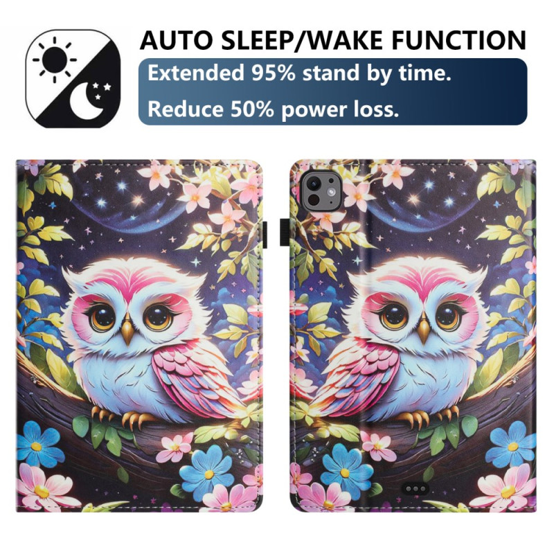 Entdecken Sie unsere elegante Hülle für das iPad Pro 11 (2025) / 11 (2024). Sie ist aus hochwertigem, strukturiertem PU-Leder gefertigt, bietet dauerhaften Schutz und sieht mit ihrem aufgedruckten Eulenmotiv einzigartig aus. Nutzen Sie den Multi-Winkel-Standfuß, die automatische Schlaf-/Wachfunktion, die Kartenfächer und den integrierten Stifthalter für ein optimales Nutzererlebnis.