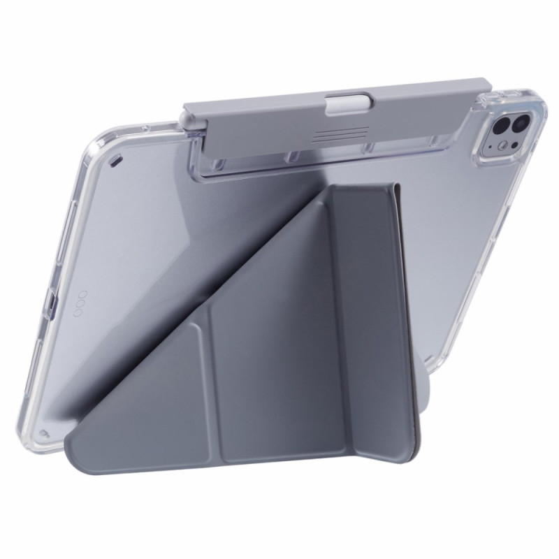 Entdecken Sie unser hochwertiges Etui für das iPad Pro 11 (2025) / 11 (2024). Hergestellt aus hochwertigem PU-Leder mit einer transparenten Rückseite, bietet sie robusten Schutz und setzt Ihr Tablet gleichzeitig in Szene. Profitieren Sie von praktischen Funktionen wie dem Origami-Ständer, dem ausziehbaren Stifthalter und der automatischen Standby-Funktion.