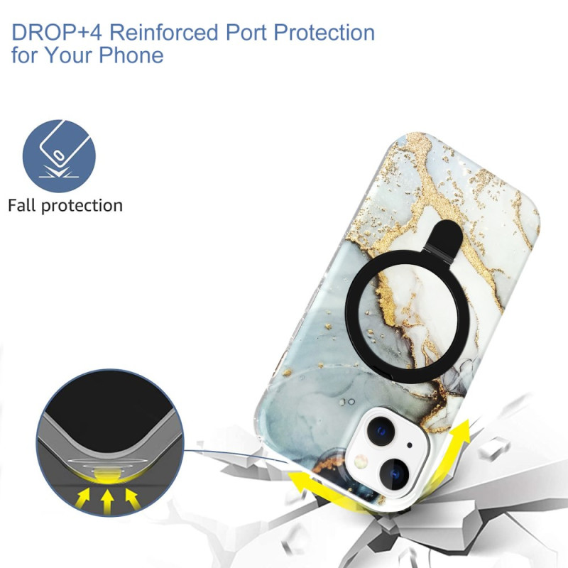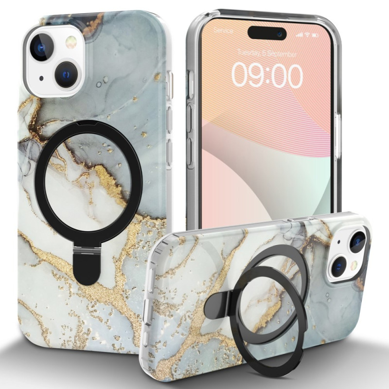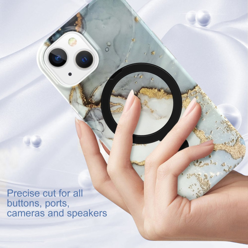 Entdecken Sie unsere elegante magnetische Hülle für das iPhone 15. Hergestellt aus PC und TPU, vereint sie Haltbarkeit und Flexibilität. Mit einem praktischen Ringhalter ausgestattet, bietet sie einen angenehmen Griff und eine Standfunktion. Die Hülle ist mit der MagSafe-Ladung kompatibel und schützt Ihr Gerät vor Stürzen und Kratzern.