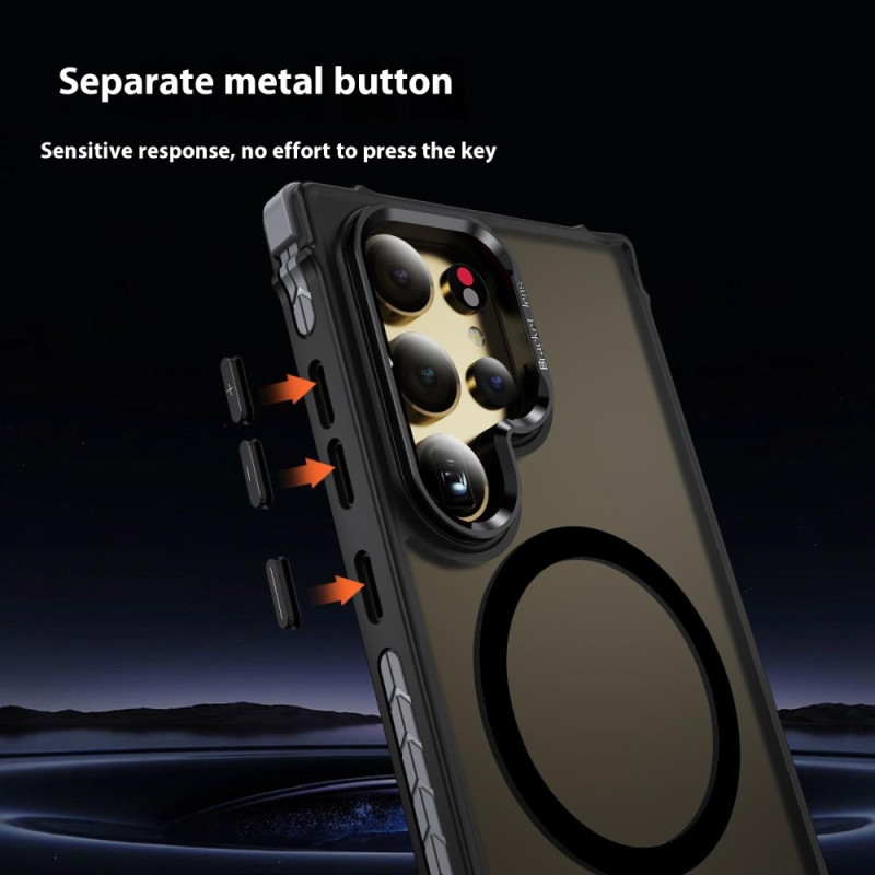 Protégez votre Samsung Galaxy S26 Ultra avec cette coque premium dotée d'un support béquille intégré, d'une finition mate anti-traces et d'une compatibilité magnétique. Design aux coins renforcés avec coussins d'air pour une protection optimale contre les chocs et les chutes.