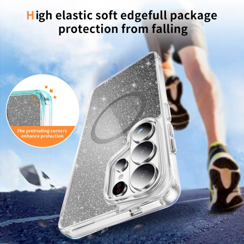 Protégez votre Samsung Galaxy S26 Ultra avec élégance grâce à cette coque magnétique transparente à paillettes. Conçue en PC et TPU résistant aux chocs, elle offre une protection complète tout en conservant la beauté de votre appareil.