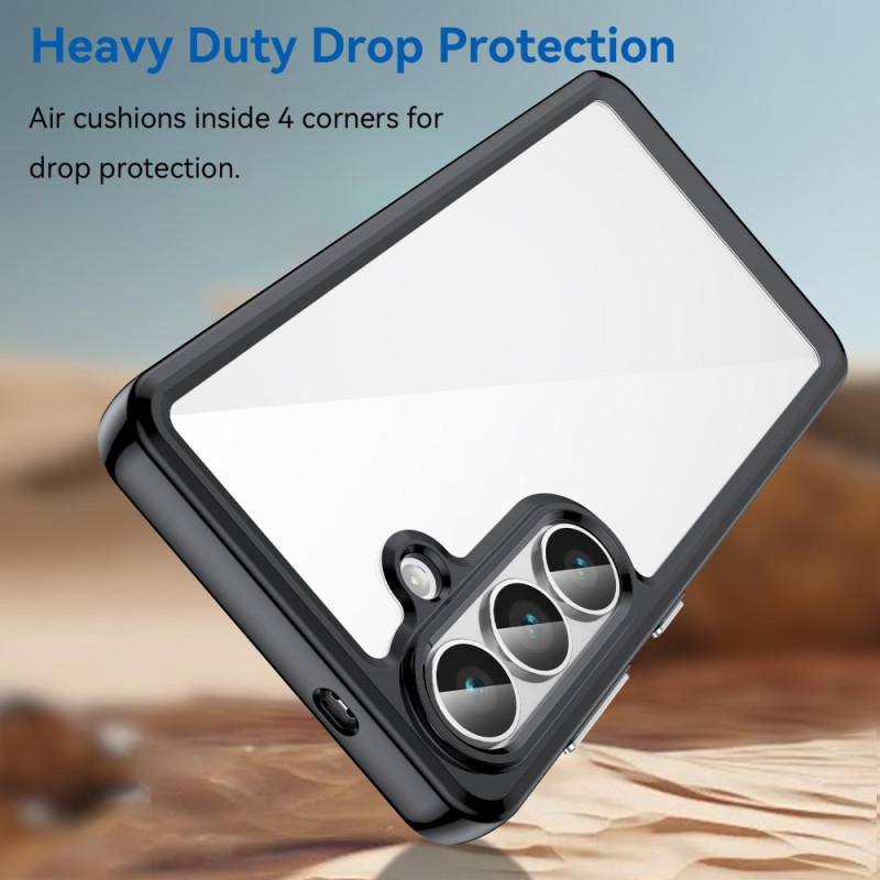 Protection renforcée pour votre Samsung Galaxy S26 avec coussins d'air aux quatre coins pour absorber les chocs. Design transparent en verre trempé HD et matériaux TPU/acrylique pour une couverture complète. Bords surélevés protégeant l'écran et l'appareil photo des rayures.
