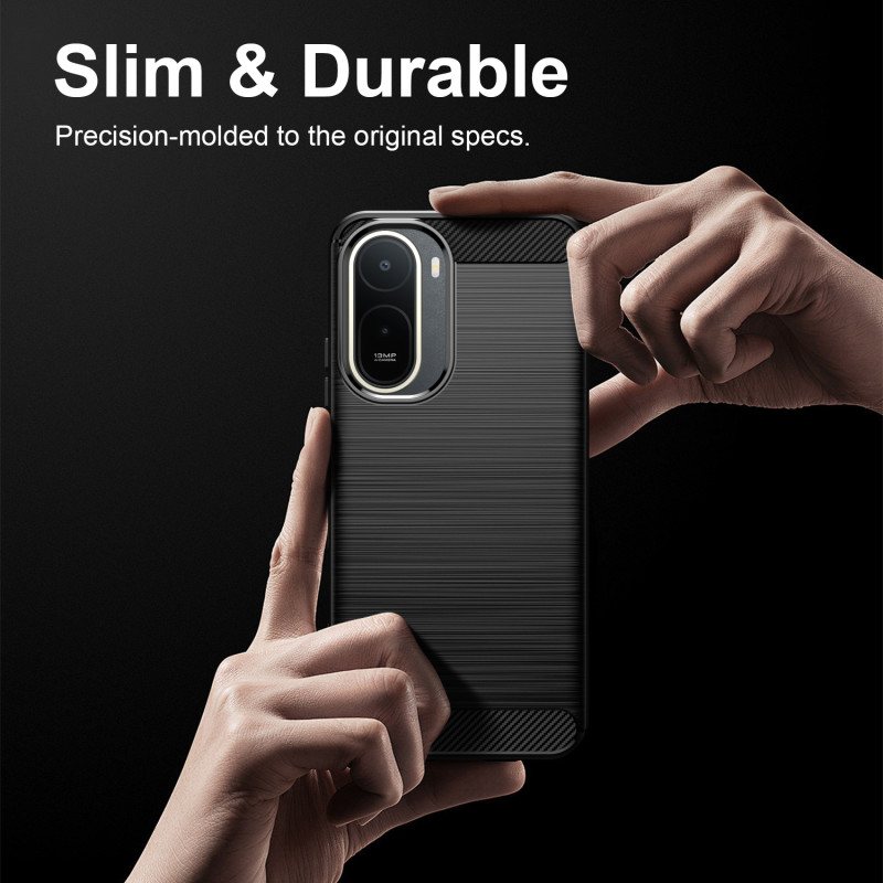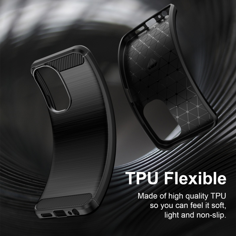 Diese Hülle für das Xiaomi Redmi A7 Pro 4G hat einen sportlichen Stil mit Details in Karbonoptik und einer gebürsteten Textur.