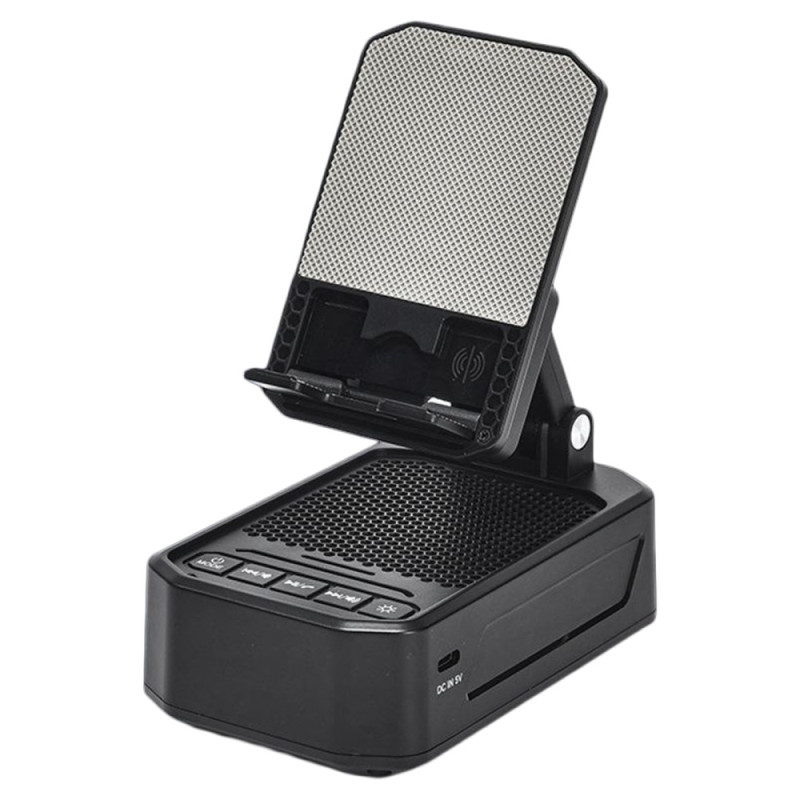 Die Konvergenz von Audio, Strom und visueller Ergonomie ist nun in einem einzigen Schreibtischzubehör vereint. Dieser Lautsprecher verfügt über eine 3-in-1-Funktionalität: Lautsprecher, Telefonhalter und Externer Akku (2000mAh). Das 52-mm-Doppellautsprechersystem, das durch eine Bassmembran ergänzt wird, sorgt für ein immersives High-Fidelity-Klangerlebnis (Bluetooth 5.3). Das Gerät erkennt und startet die kabellose Wiedergabe, wenn das Telefon in die Halterung gelegt wird. Dank seines faltbaren Designs und der Umgebungsbeleuchtung (7 Farben) eignet er sich ideal, um im Büro oder zu Hause die perfekte Atmosphäre zu schaffen.
