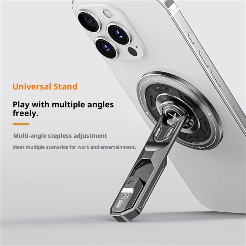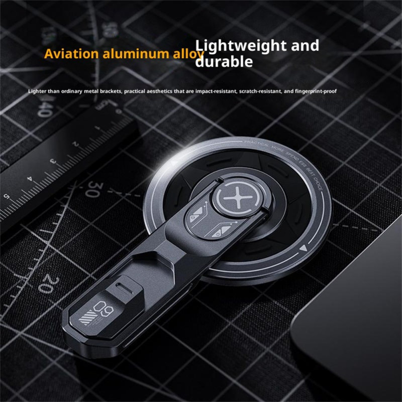 Die unauffällige Integration eines vielseitigen Ständers in das Design aus Holz und Aluminium maximiert die Funktionalität, ohne das Gerät zu beschweren. Der Ständer kombiniert die warme Ästhetik von Holz mit der Haltbarkeit von Aluminiumlegierungen. Mit seinem geringen Gewicht von 46 g und seinem faltbaren Design ist er ideal für den Transport geeignet. Dank seiner doppelten magnetischen Seite sichert er Ihr Telefon (4-7 Zoll) fest und passt sich verschiedenen eisenhaltigen Oberflächen an (Küche, Schreibtisch). Die 360-Grad-Drehung ermöglicht eine präzise Anpassung für alle Betrachtungsbedürfnisse.