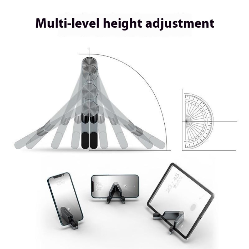 Leicht zu transportieren und sofort einsatzbereit, bietet dieser Ständer eine stabile Basis für visuelle Ergonomie, wo immer Sie sind. Hergestellt aus einer hochwertigen Aluminiumlegierung, sorgt er für überlegene Haltbarkeit und einen professionellen Look. Das faltbare Design ermöglicht eine einfache Aufbewahrung in einer Tasche oder einem Aktenkoffer. Mit seiner sicheren, verstellbaren Plattform hebt er Ihr Gerät (4 bis 7 Zoll) in einen bequemen Betrachtungswinkel für Videokonferenzen oder Medienkonsum. Diese universelle Halterung ist für Berufstätige und Schüler, die eine schnelle und zuverlässige Installation wünschen, unerlässlich.