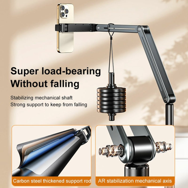 Der Boneruy Bodenständer ist die ideale Lösung für Streaming, Online-Unterricht oder freies Videoschauen. Sein um 360° drehbares Design und die von 51 bis 101 cm einstellbare Höhe bieten optimalen Komfort, egal ob Sie liegen, sitzen oder stehen. Hergestellt aus einer Aluminiumlegierung, Karbonstahl, Kunststoff und Silikon, sorgt er für Stabilität und Haltbarkeit. Sein verstellbarer Arm bietet Platz für zwei Telefone gleichzeitig oder einen Tablet-PC in horizontaler oder vertikaler Ausrichtung. Zusammenklappbar und elegant passt er sich allen Umgebungen und alltäglichen Nutzungen an.