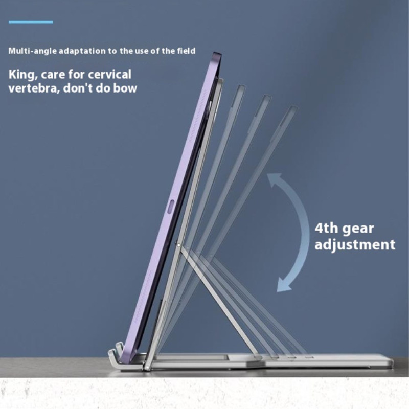 Der faltbare Ständer H12PLUS bietet eine elegante, stabile und vielseitige Lösung, um Tablets, Bildschirme und tragbare Monitore von 5 bis 16 Zoll zu halten. Mit seinen vier einstellbaren Höhenstufen von ca. 146 bis 165 mm ermöglicht er einen bequemen Blickwinkel beim Arbeiten, Videoschauen oder Zeichnen. Das Gestell aus Aluminiumlegierung sorgt in Kombination mit rutschfesten Silikonpads für eine hervorragende Stabilität und schützt Ihre Geräte. Der ultradünne, leichte und vollständig zusammenklappbare Tisch lässt sich leicht transportieren und trägt auch zur Verbesserung der Luftzirkulation unter Ihren Geräten bei.