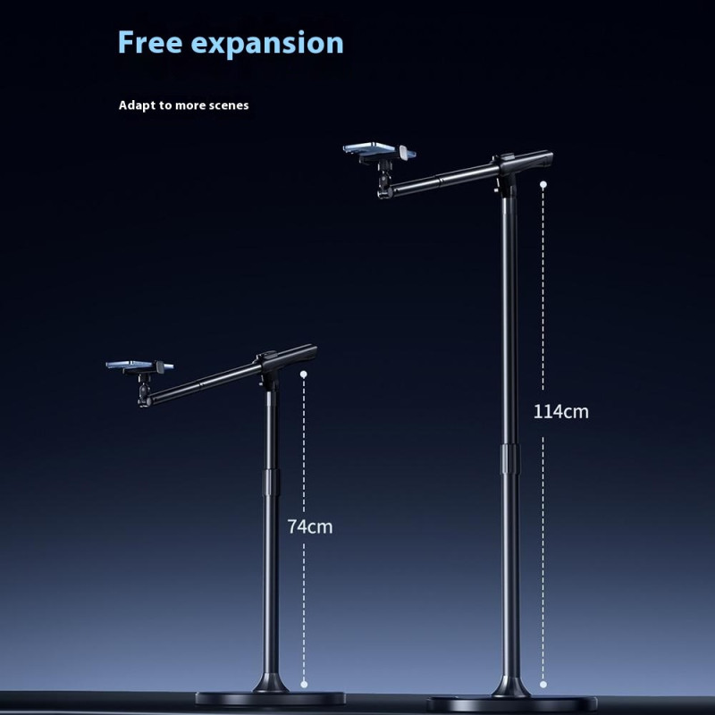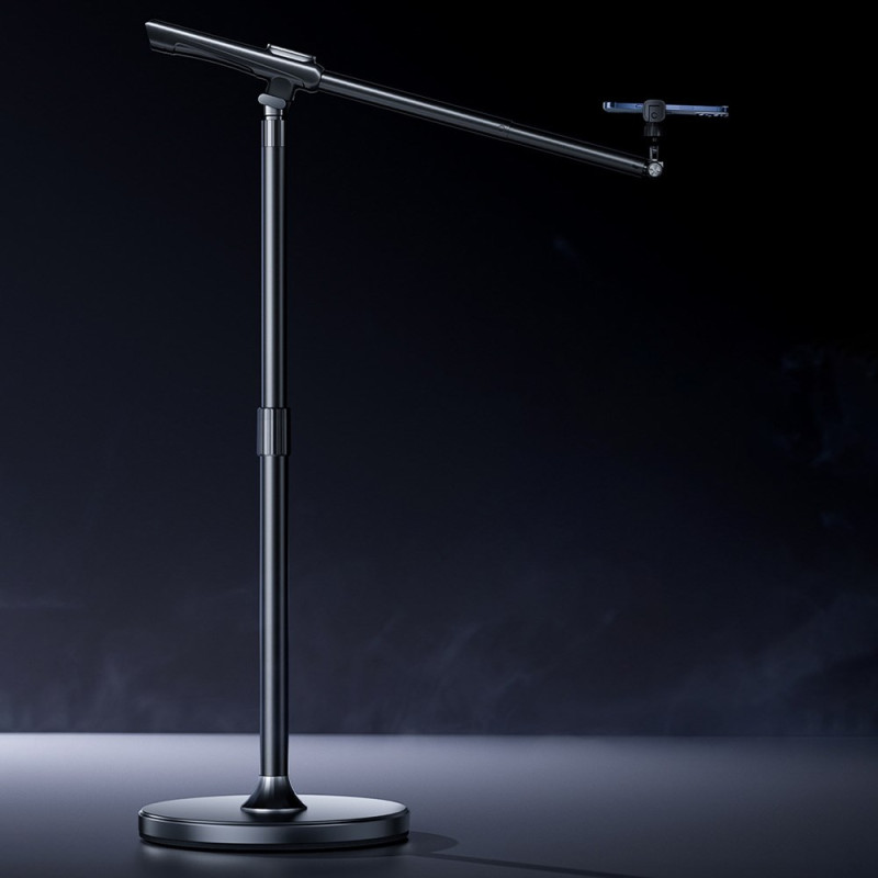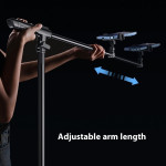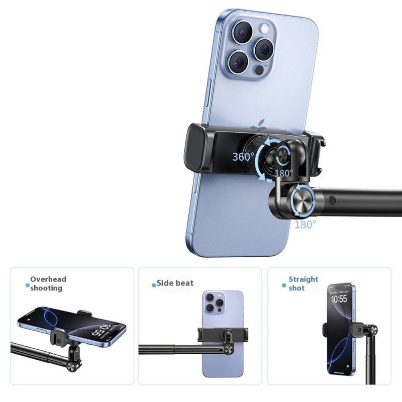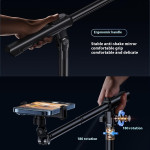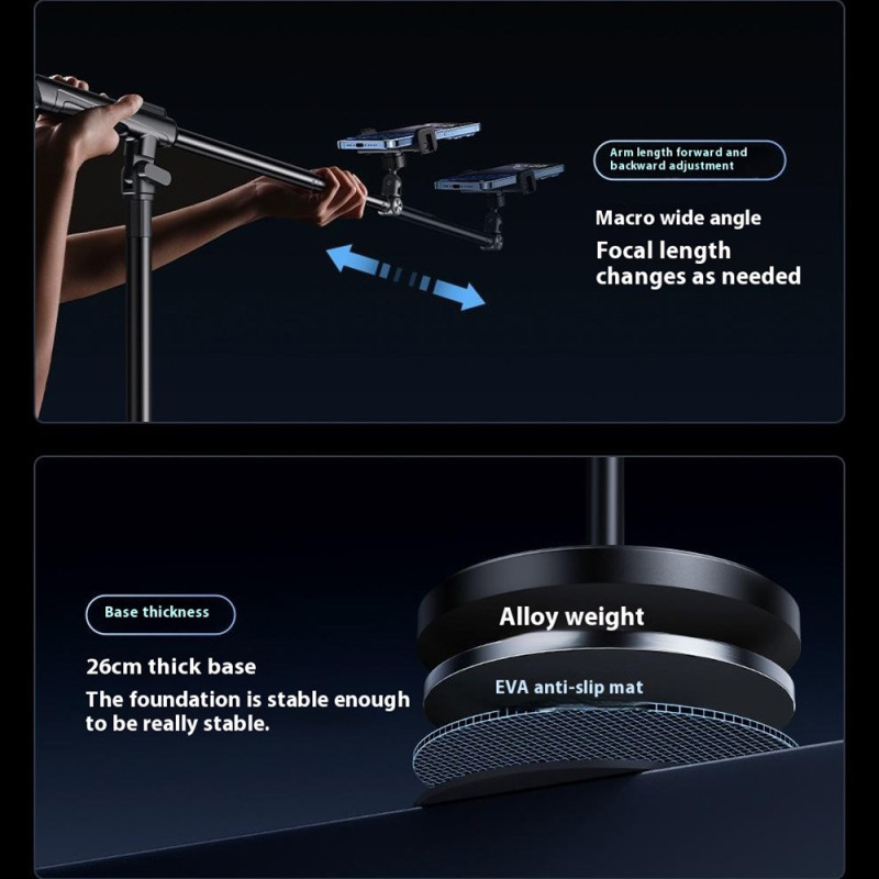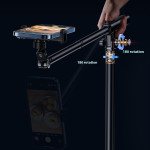 Professionelle, verstellbare Smartphone-Halterung mit 360°-Panoramaarm, stabiler 26-cm-Basis und 180°-Vertikal-/Horizontaleinstellungen. Perfekt für Live-Streaming, die Erstellung von Inhalten und Videos. Kompatibel mit Smartphones bis zu einer Größe von 6,7 Zoll. Inklusive Schnittstelle für Zubehör.
