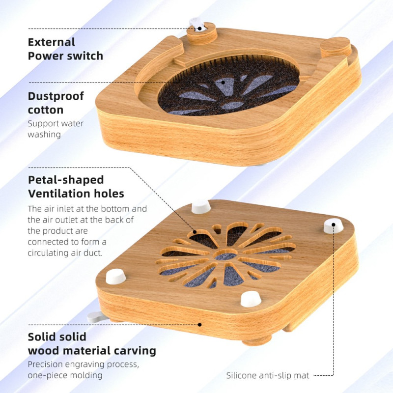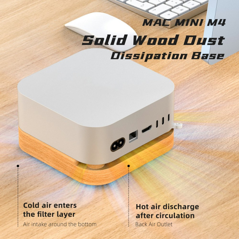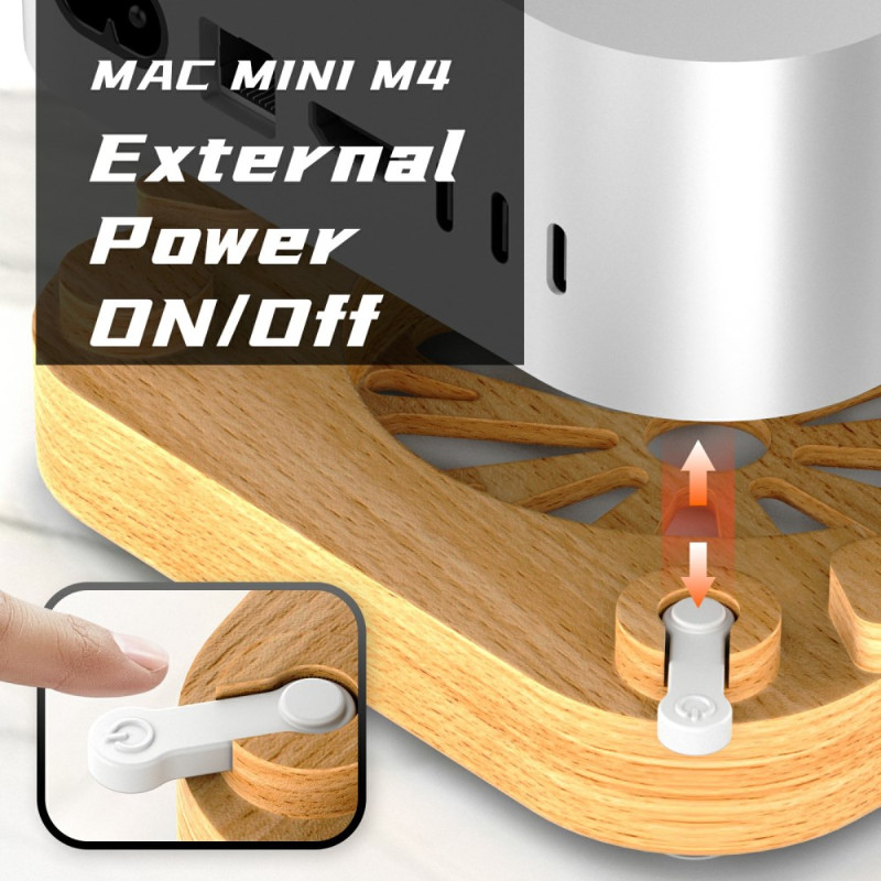 Dieser vertikale Ständer für den Mac Mini M4 / M4 Pro kombiniert Zweckmäßigkeit und Eleganz, um Ihren Mini-Computer zu schützen und zu optimieren. Mit einem externen Schalter ausgestattet, ermöglicht er das einfache Ein- und Ausschalten Ihres Geräts, ohne dass Sie direkt auf den ursprünglichen Knopf zugreifen müssen. Sein Staubschutzsystem mit einer waschbaren Baumwollschicht schützt effektiv vor Staub und Tierhaaren. Mit seinen blütenblattförmigen Öffnungen und dem kreisförmigen Luftkanal sorgt er für eine bessere Kühlung. Er ist aus einem Stück geschnitztem Massivholz gefertigt und sorgt für Stabilität, Haltbarkeit und ein edles Erscheinungsbild.
