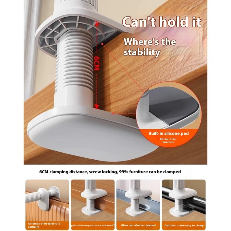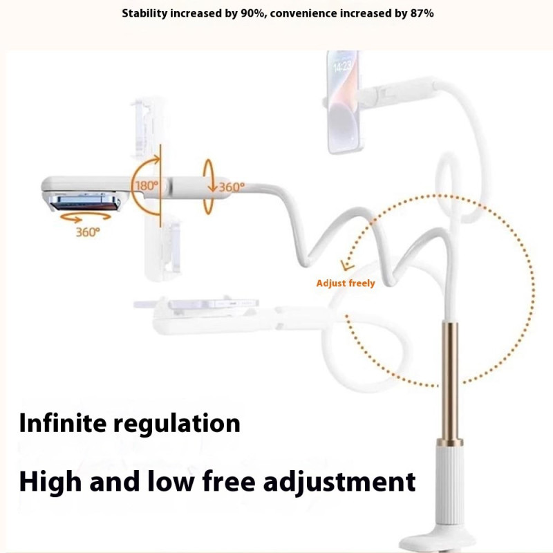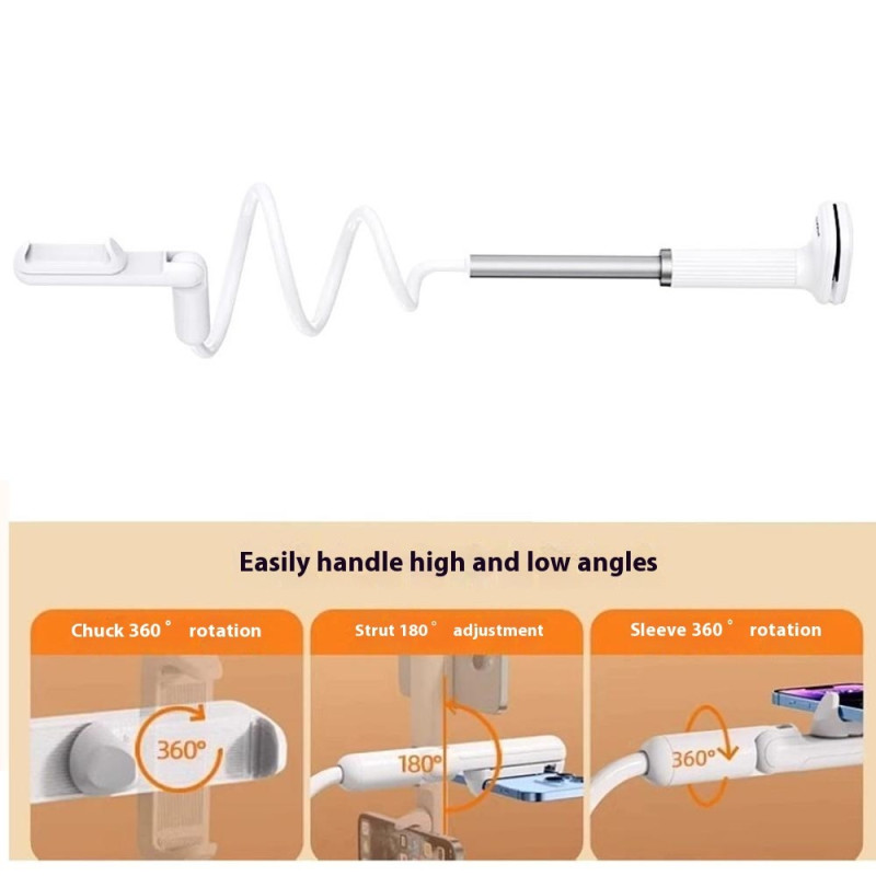 Dieser flexible Telefonhalter für den Nachttisch bietet dank seiner beeindruckenden 900°-Drehung völlige Freiheit. So können Sie den Winkel perfekt für Streaming, Videogespräche oder das Betrachten vom Bett aus einstellen. Der lange Arm von 110 cm sorgt für eine ideale Reichweite und bleibt dank der Konstruktion aus Aluminiumlegierung, Stange mit Metallkern und robustem ABS-Kunststoff dennoch stabil. Die mit Silikon gefütterte Klemme schützt Ihr Smartphone oder Ihren Tablet-PC und sorgt gleichzeitig für eine sichere Befestigung. Sie wurde für eine komfortable, freihändige Nutzung entwickelt und passt sich jeder Zimmerkonfiguration an.