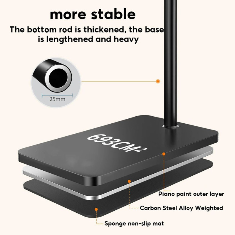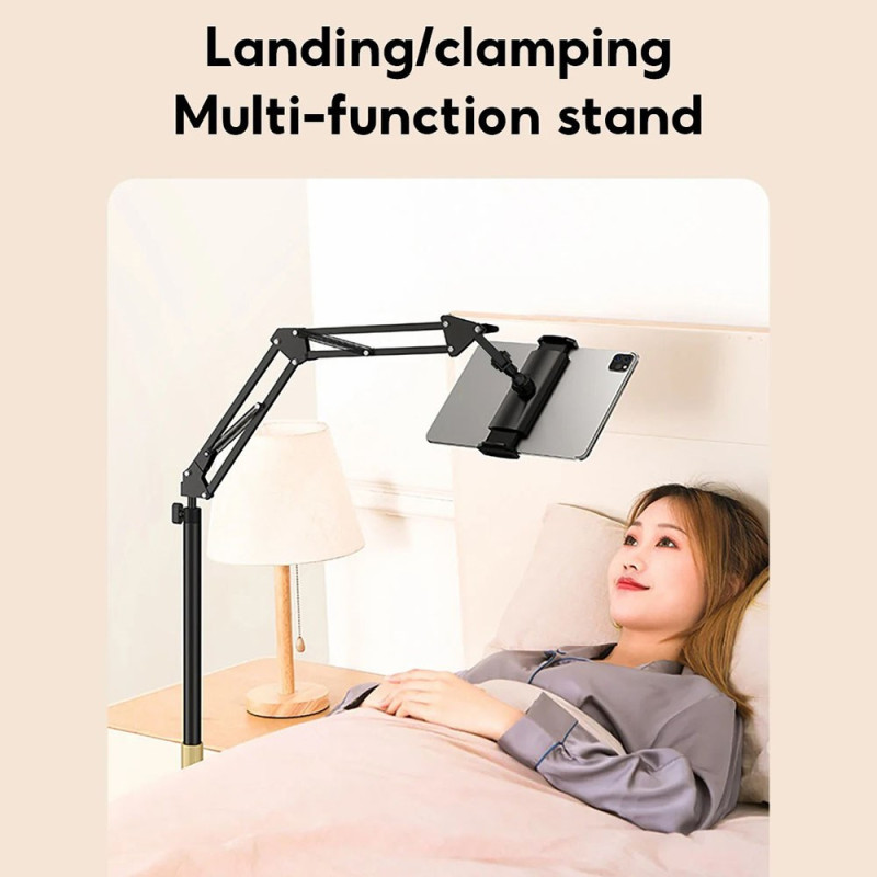 Genießen Sie optimalen Komfort mit diesem teleskopischen Bodenständer, der sich bis zu 1,6 m in der Höhe verstellen lässt. Sein flexibler Arm und die 360°-Drehung ermöglichen eine perfekte Positionierung Ihres Geräts. Robuste Konstruktion aus Stahl und ABS für maximale Stabilität.