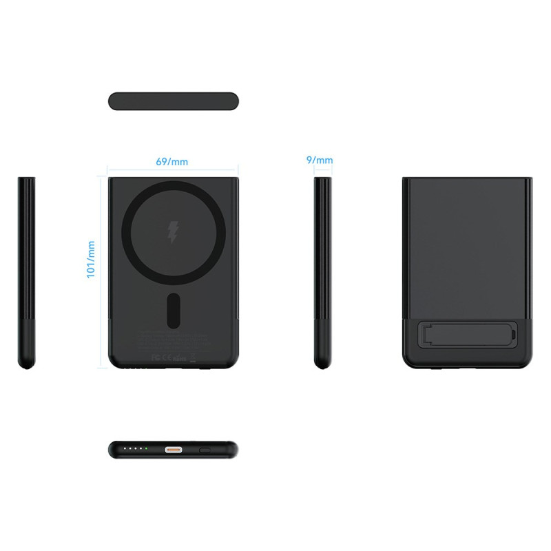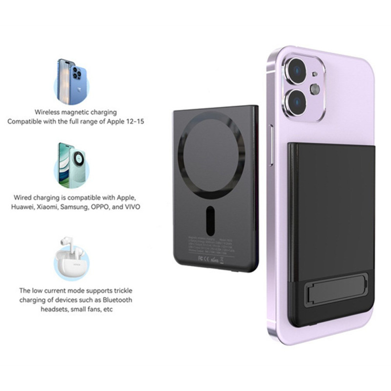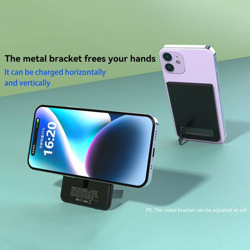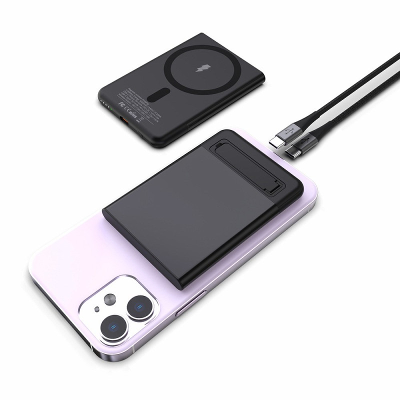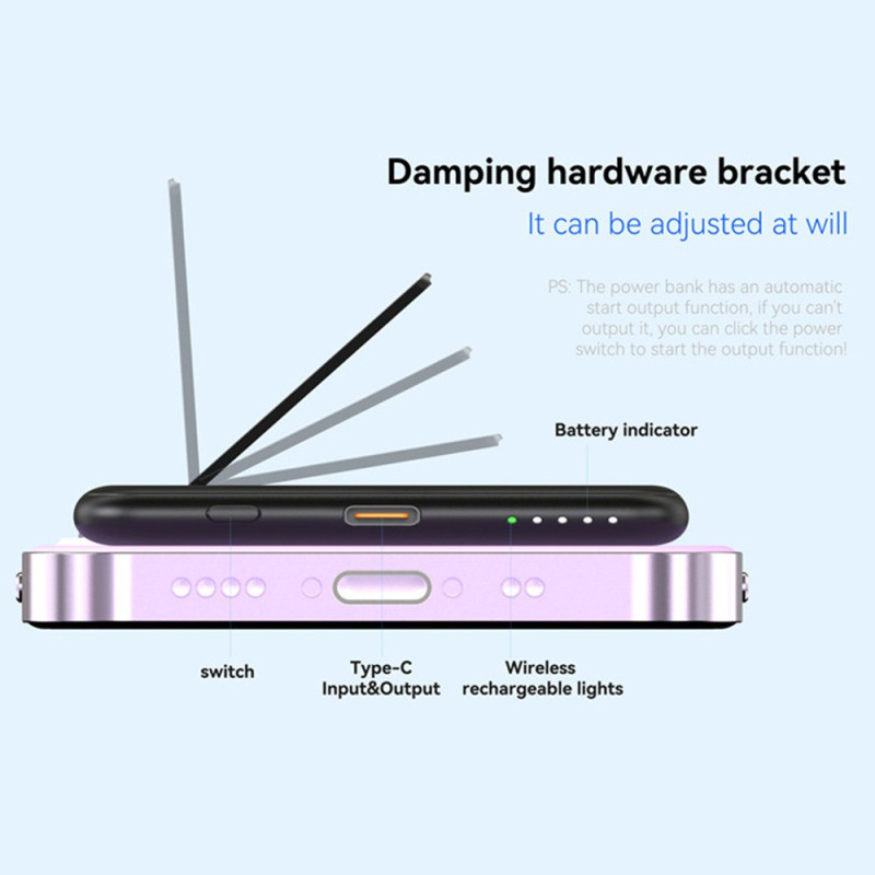 Die perfekte Kombination aus metallischer Ästhetik und kabelloser Effizienz ist endlich da. Der 5000mAh Externe Akku wurde für maximale Portabilität entwickelt und hat ein ultradünnes Profil von 9 mm. Das Metallgehäuse sorgt für Langlebigkeit und einen hochwertigen Look. Er verfügt über eine schnelle kabellose Aufladung mit bis zu 15 W, sodass Sie Ihr Gerät auch ohne Kabel effizient aufladen können. Die integrierte Halterung ist ideal für die freihändige Nutzung im Lademodus. Mit einer Leistung von 5000mAh ist sie der ideale Energiespender für einen anstrengenden Tag.