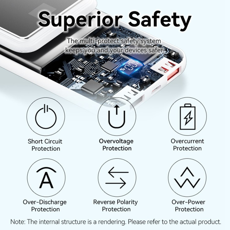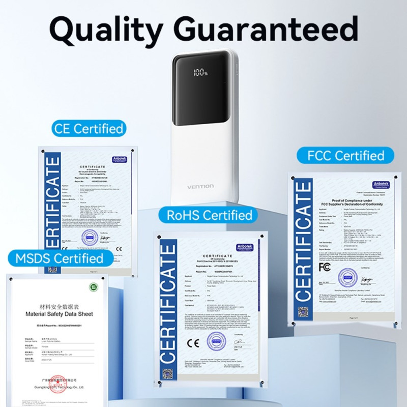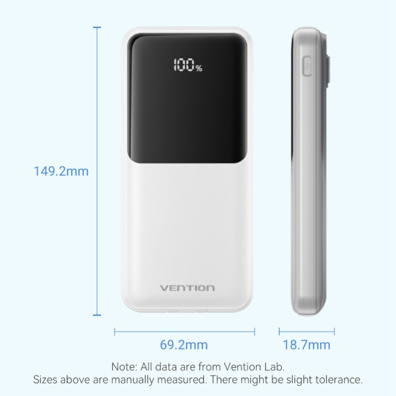 Dieser VENTION 10000mAh Externe Akku wurde entwickelt, um die Anforderungen von Geschäftsleuten an Mobilität und Vielseitigkeit zu erfüllen. Er verfügt über zwei integrierte Kabel (USB-C und 8Pin) für eine vollständige Ladelösung, sodass Sie kein zusätzliches Zubehör mit sich herumtragen müssen. Die Kapazität von 10000mAh bietet eine erhebliche Energiereserve, während die maximale Ausgangsleistung von 22,5W ein schnelles Aufladen kompatibler Geräte gewährleistet. Das aus PC- und ABS-Materialien gefertigte Chassis sorgt für eine hohe Haltbarkeit bei kompakter Größe. Darüber hinaus bietet das digitale Display eine präzise und professionelle Überwachung des Ladezustands, die für eine optimale Verwaltung der Akkulaufzeit unerlässlich ist.