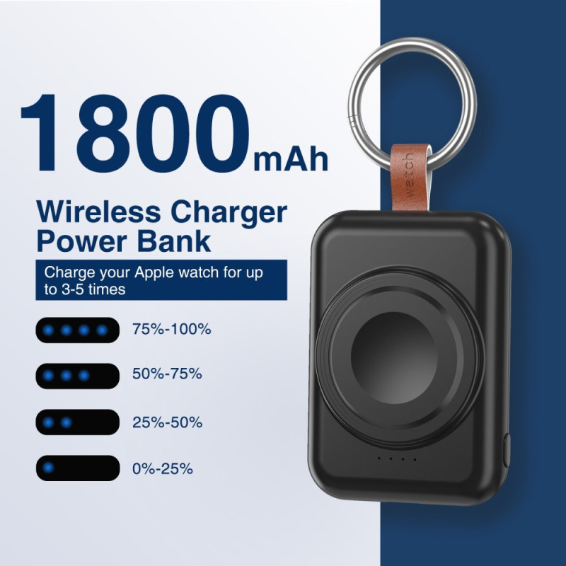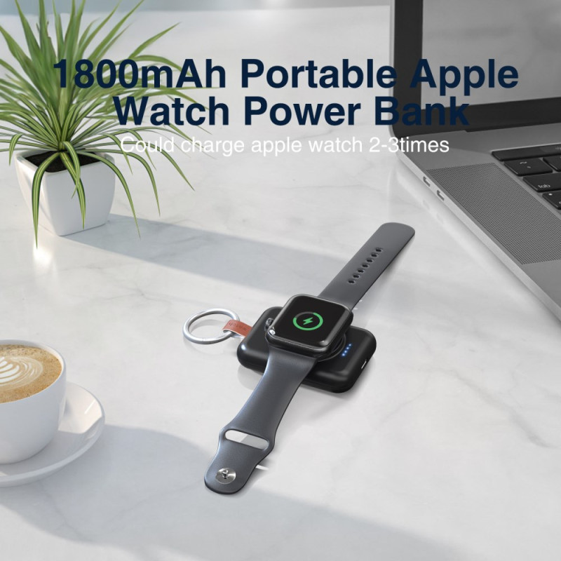 Dieses Miniatur-Ladegerät wurde speziell für die Apple Watch entwickelt und sorgt für eine zuverlässige Akkulaufzeit, wenn Sie unterwegs sind. Mit einer Kapazität von 1800mAh ist dieser Externe Akku ein unverzichtbares Werkzeug für das Aufladen zwischendurch. Dank seines kompakten Designs (70 x 50 x 18 mm) und seines geringen Gewichts von 60,2 g ist er äußerst tragbar und passt problemlos in jede Tasche oder Handtasche. Ausgestattet mit einer integrierten Ringschlaufe ist es ideal für Outdoor-Aktivitäten wie Wandern oder Camping. Sie bietet umfassende Kompatibilität mit allen Generationen der Apple Watch (von der Serie 2 bis zur Ultra 49mm) und bietet eine universelle und sichere Ladelösung.