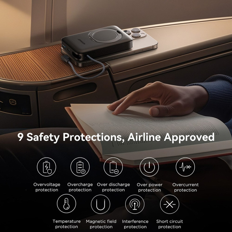 Dieser JOYROOM Externe 3-in-1-Akku wurde als integrierte und sichere Energielösung entwickelt und definiert die Bequemlichkeit für unterwegs neu. Mit einer Kapazität von 10000mAh bietet sie fast zwei volle Aufladungen für die Topmodelle. Sie liefert eine superschnelle Ladeleistung von 22,5W, egal ob über den Type-C-Anschluss oder das integrierte Kabel, und unterstützt 15W kabelloses Laden. Seine magnetische 13N-Halterung sorgt für eine stabile Verbindung. Der um 360° drehbare Ringhalter erleichtert den Transport und das freihändige Betrachten. Dieses Modell verfügt über 9 Schutzschichten und erfüllt die Anforderungen der Luftfahrt für einen sicheren Transport.