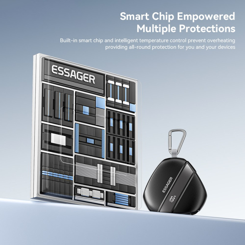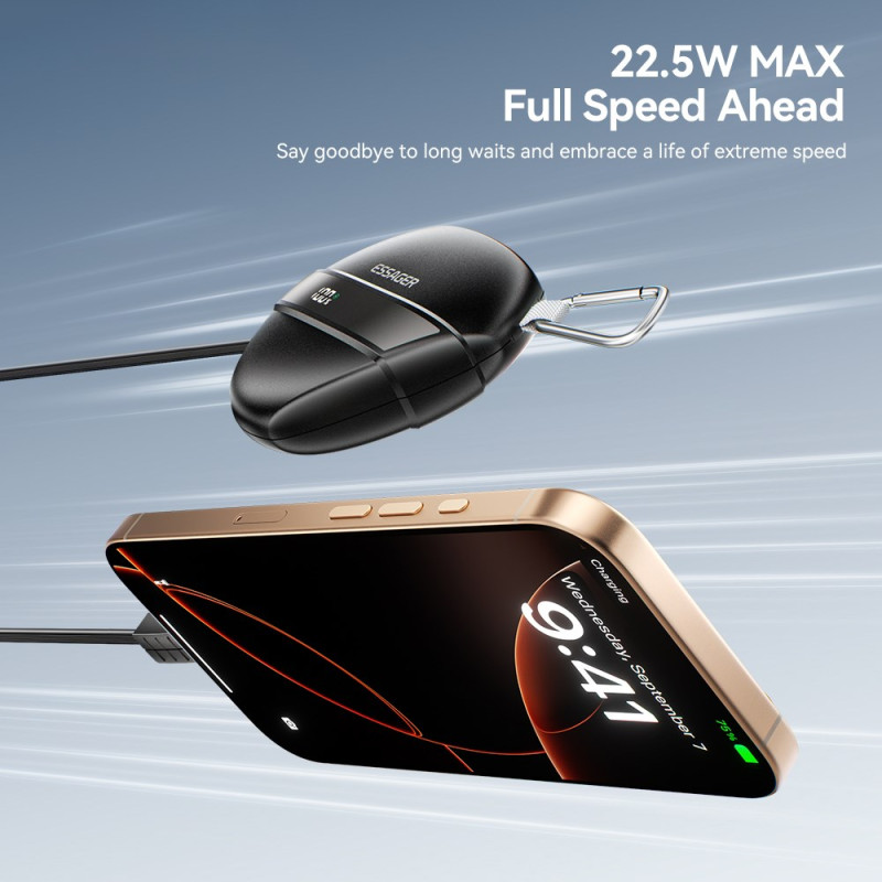 Die Beseitigung logistischer Zwänge und die Aufrechterhaltung einer schnellen Ladung sind die Ziele dieser für die aktive Mobilität entwickelten Externen Batterie von ESSAGER. Mit einer Kapazität von 10000mAh bietet er die nötige Reichweite für tägliche Fahrten oder kurze Ausflüge. Die maximale Ausgangsleistung von 22,5 W garantiert ein superschnelles Aufladen. Durch die Integration eines 70cm langen, einziehbaren Kabels wird kein Platz verschwendet, während der Karabinerhaken eine sichere Befestigung an einer Tasche oder einem Gürtel ermöglicht. Dank seines intelligenten Chips optimiert es die Effizienz des Ladevorgangs. Das Gerät ist CE- und RoHS-zertifiziert und belegt damit die Einhaltung der europäischen Vorschriften.