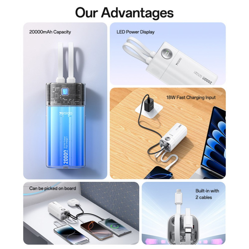 Die Integration einer massiven Energiequelle und einer überlegenen Zelltechnologie macht diesen Externen Akku von YESIDO zu einem Gerät der Wahl. Mit einer Kapazität von 20000mAh und 21700 Hochleistungszellen bietet er eine außergewöhnliche Haltbarkeit und Energiedichte. Das Design integriert zwei Kabel (USB-C und Lightning), die bis zu 22,5W unterstützen, wodurch die Notwendigkeit von zusätzlichem Zubehör entfällt. Sie ermöglicht das gleichzeitige Aufladen von vier Geräten. Die digitale Anzeige bietet eine sofortige Ablesung des Akkustatus. Die gesamte Einheit besteht aus haltbarem ABS für eine kompakte Tragbarkeit und ist für den europäischen Markt CE-zertifiziert.