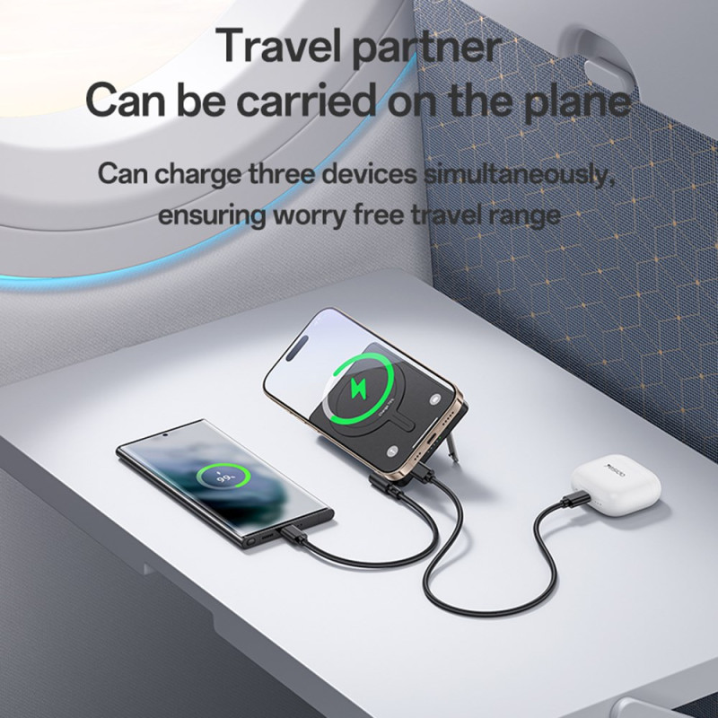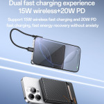 Die vollständige Beseitigung der Ladeangst wird durch diese 3-in-1-Stromversorgungslösung gewährleistet, die Kabel, Drahtlosverbindung und Halterung integriert. Dieser externe 10000mAh-Akku bietet eine kabellose magnetische Leistung von 15W und eine schnelle kabelgebundene Ladung von 20W. Er verfügt über ein integriertes Type-C-Kabel für sofortiges Aufladen ohne Chaos und einen ausziehbaren Ständer für freihändiges Betrachten. Sicherheit wird großgeschrieben: Das Gerät verfügt über einen einzigartigen doppelten Überhitzungs- und PCBA-Schutz, der eine zuverlässige Nutzung unter Einhaltung der europäischen Standards gewährleistet.