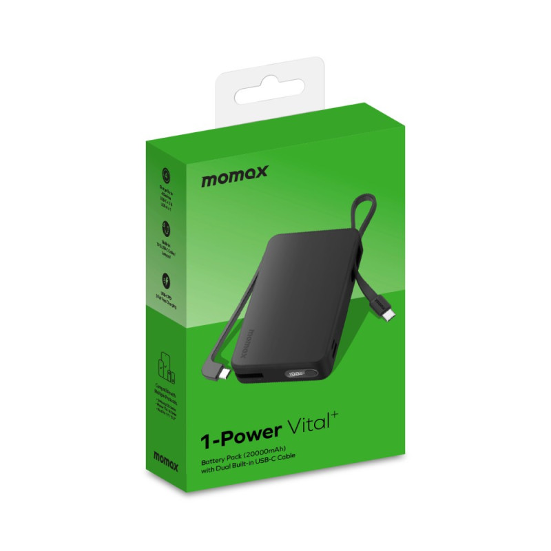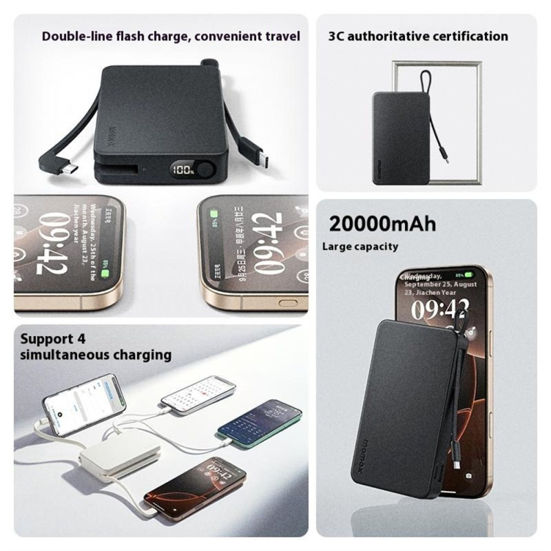 Als wichtiges Produktivitätstool ist dieser externe Akku von MOMAX der ultimative Energie-Hub für Geschäftsleute, die viel unterwegs sind. Die riesige Kapazität von 20.000 mAh garantiert eine lange Laufzeit für alle Ihre Geräte. Er liefert eine maximale Ladeleistung von 30 W und sorgt so für ein superschnelles Aufladen. Die Integration von zwei USB-C-Kabeln eliminiert die Abhängigkeit von externen Kabeln und bietet eine vollständige und geordnete Lösung. Mit den vier verfügbaren Ausgängen können vier Geräte gleichzeitig aufgeladen werden. Das Gehäuse aus PC+ABS sorgt für eine lange Lebensdauer.