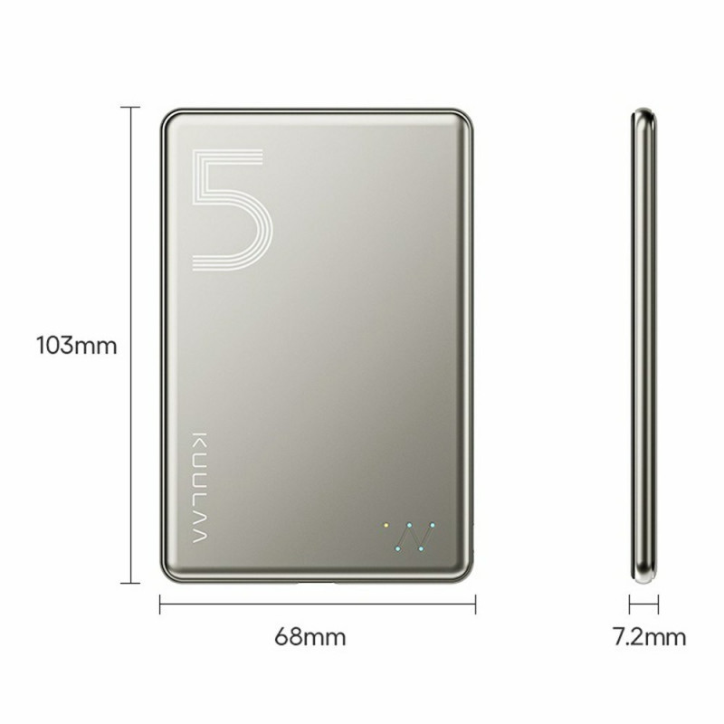Die Kombination aus minimalistischer Eleganz und magnetischer Stärke definiert dieses neue Segment der tragbaren Stromversorgung. Mit einer Dicke von nur 7,2 mm ist dieser Externe Akku 5000mAh der dünnste seiner Klasse, was den unauffälligen Transport erleichtert. Sein Gehäuse aus Aluminiumlegierung und gehärtetem Glas bietet eine glatte Haptik und überlegene Widerstandsfähigkeit. Die eingebauten N52-Magneten sorgen für eine ultra-stabile Befestigung und eine präzise Ausrichtung. Sie liefert eine kabellose Ladung von bis zu 15 W und eine schnelle kabelgebundene Ladung von 20 W. Darüber hinaus ist sie für den Flugverkehr zugelassen und erfüllt die europäischen CE-Normen.
