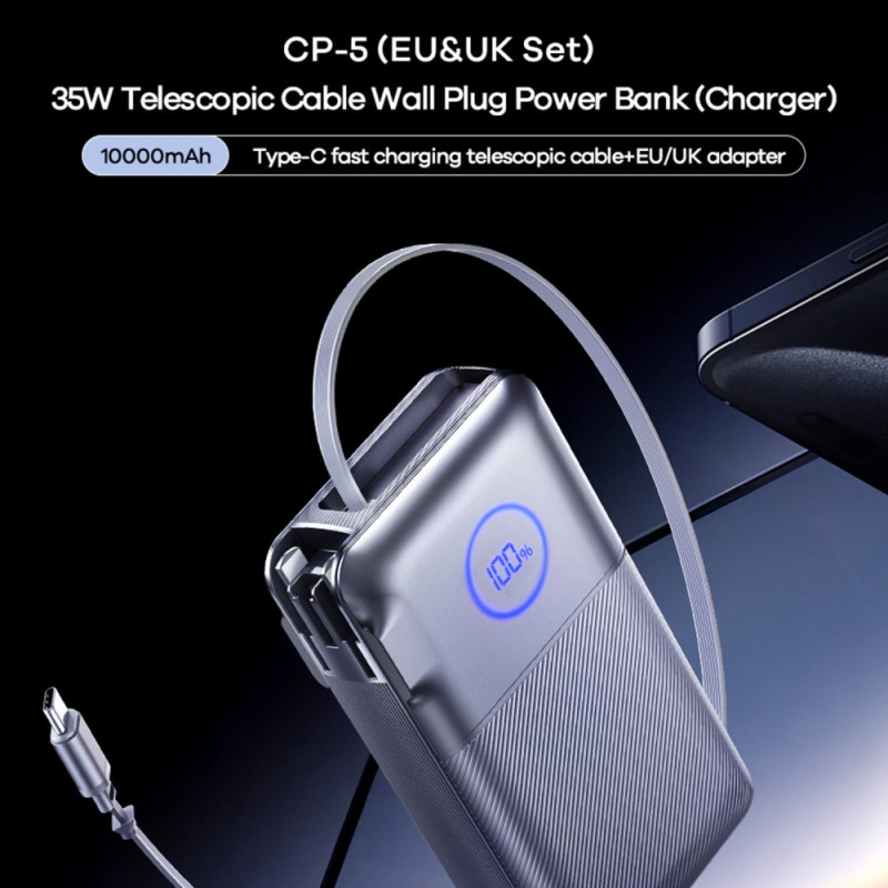 Diese externe Powerbank wurde entwickelt, um dir das Reisen zu erleichtern. Sie vereint Wandladegerät, einziehbares Type-C-Kabel und EU/UK-Adapter in einem einzigen kompakten Gerät. Die 35 W Leistung ermöglicht ein schnelles Aufladen sowohl deiner Geräte als auch der Powerbank selbst. Das faltbare Design erleichtert die Aufbewahrung, während das LED-Display für eine klare Ablesung des Energiezustands sorgt. Dank ihrer zuverlässigen Polymerzellen sorgt sie für eine stabile und sichere Ladung, egal wo du bist.