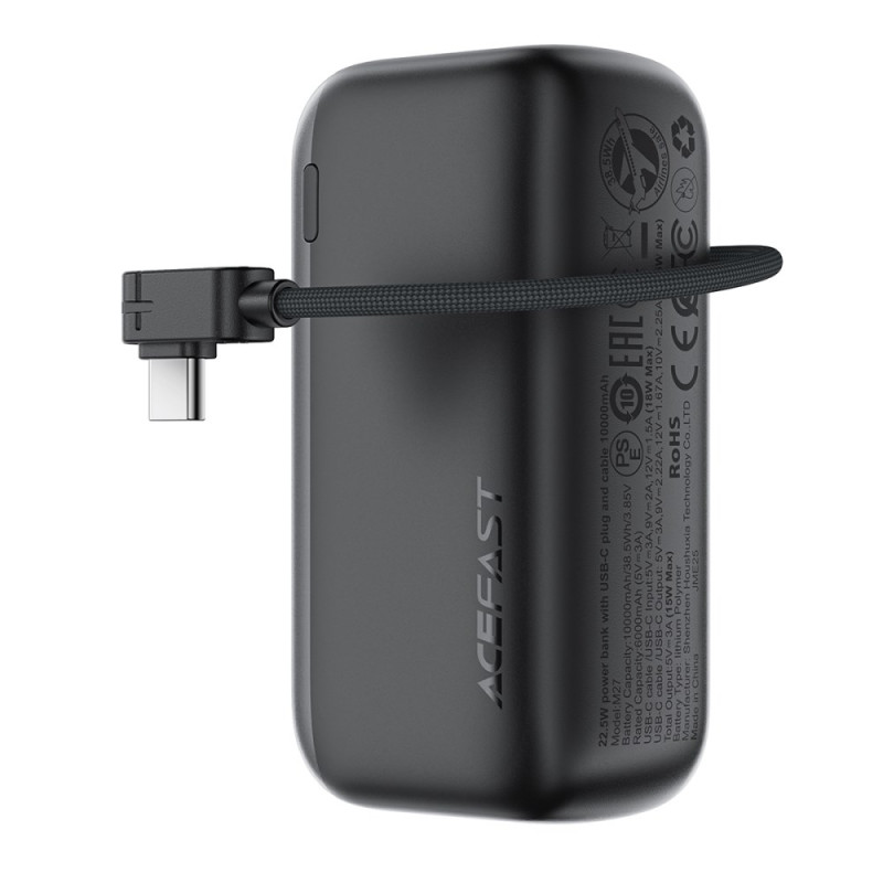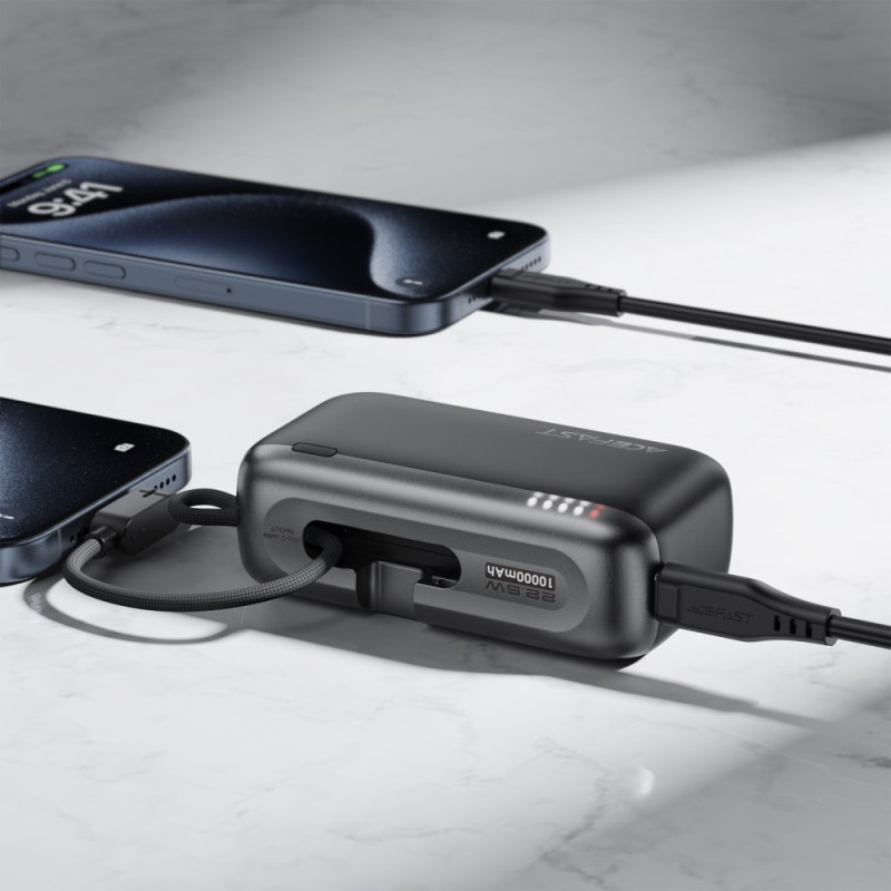 Dieser kompakte externe Akku vereint Leistung und Praktikabilität, um dich auf deinen Reisen zu begleiten. Mit seinen 10000mAh bietet er eine komfortable Energiereserve, während er gleichzeitig leicht ist und in jede Tasche passt. Das einziehbare USB-C-Kabel macht die Mitnahme von zusätzlichem Zubehör überflüssig und die 22,5W-Schnellladung sorgt für eine effiziente Stromversorgung kompatibler Geräte. Die LED-Anzeige ermöglicht es, den Energiepegel mit einem Blick zu überprüfen - ideal, um den ganzen Tag über gelassen zu bleiben.