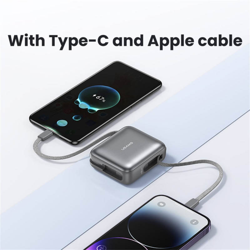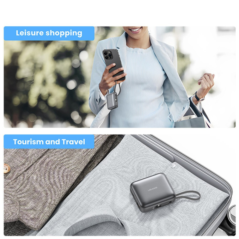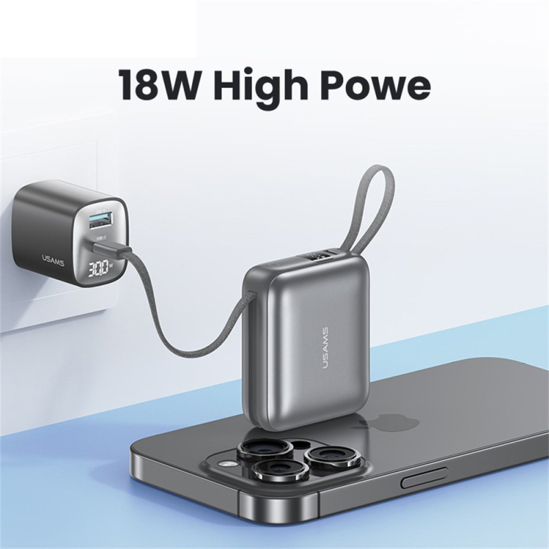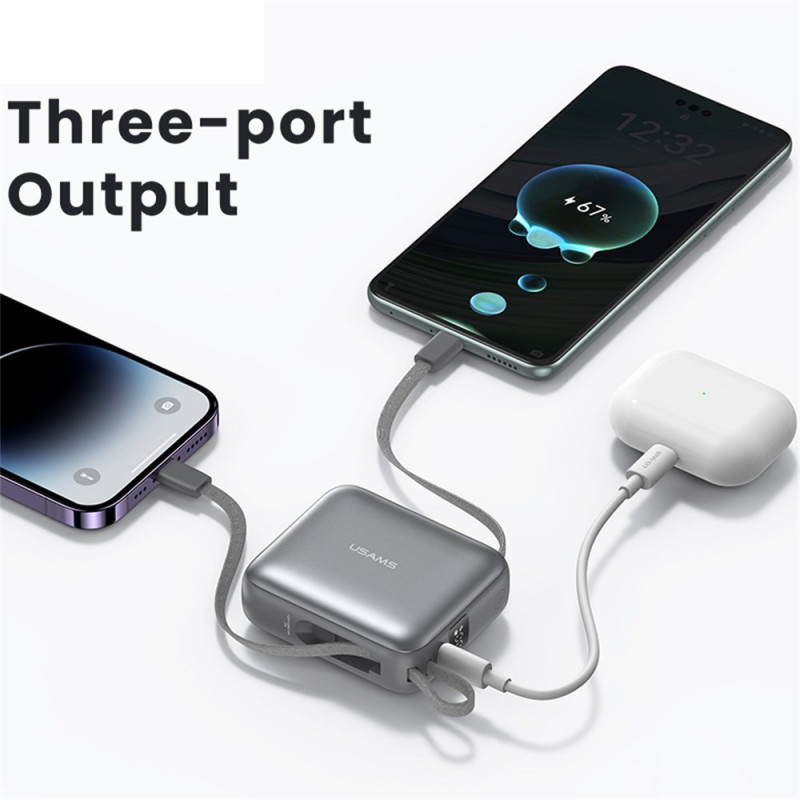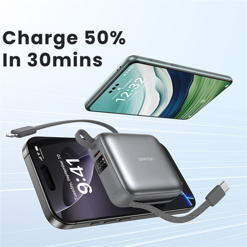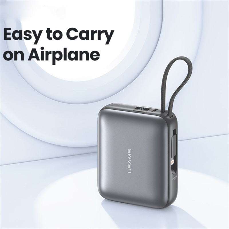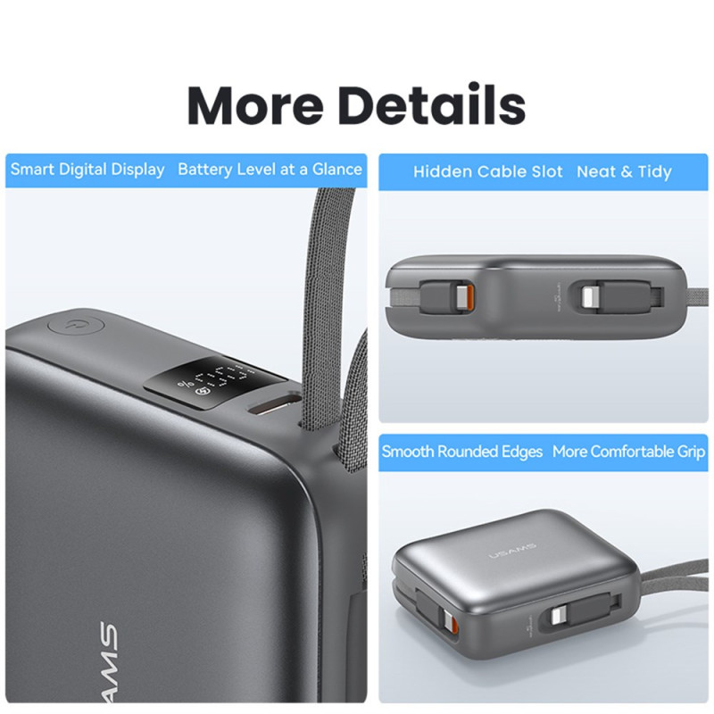 Externer Akku 10000mAh mit 20W Schnellladung und integrierten Kabeln USAMS