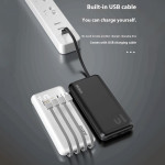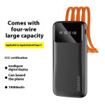 Diese externe DUDAO-Batterie mit 10000mAh bietet eine praktische Lösung zum Aufladen mehrerer Geräte, ohne zusätzliche Kabel mit sich herumtragen zu müssen. Er verfügt über drei Ausgangskabel und ein USB-Eingangskabel, sodass Sie ihn unterwegs sofort verwenden können. Da sie bis zu fünf Geräte gleichzeitig mit Strom versorgen kann, eignet sie sich sowohl für den privaten Gebrauch als auch für die gemeinsame Nutzung. Dank ihres kompakten Formats lässt sie sich leicht halten und in jede Tasche stecken. Die vierstufige Digitalanzeige zeigt deutlich den verbleibenden Akkustand an, sodass Sie das Aufladen besser vorausplanen können.