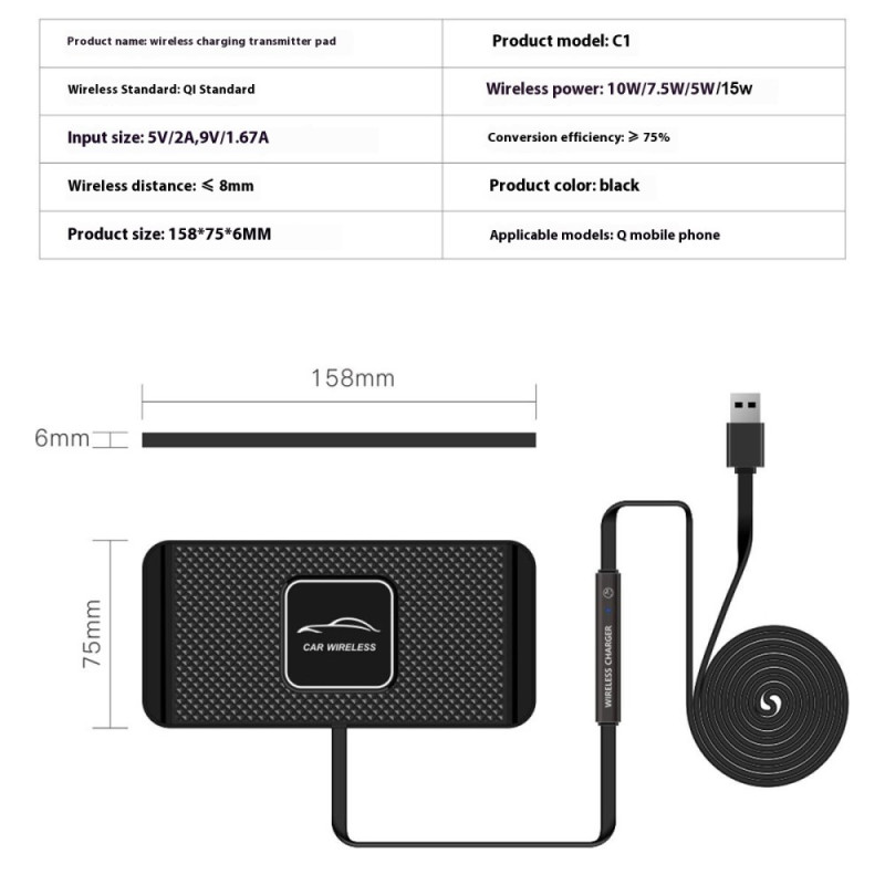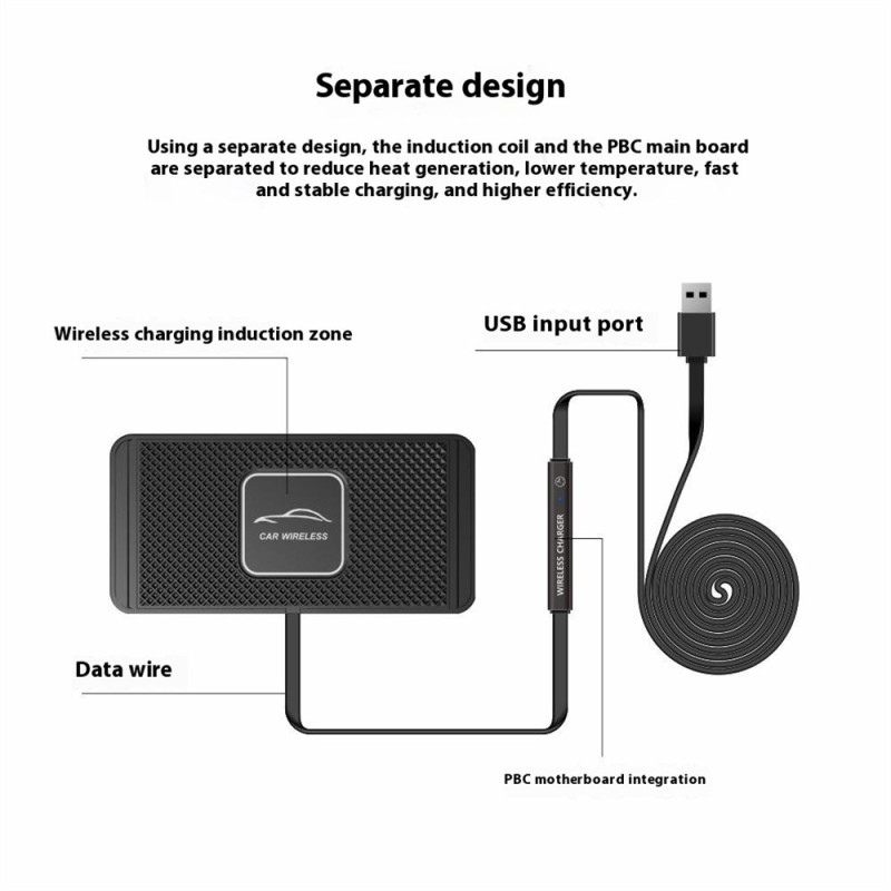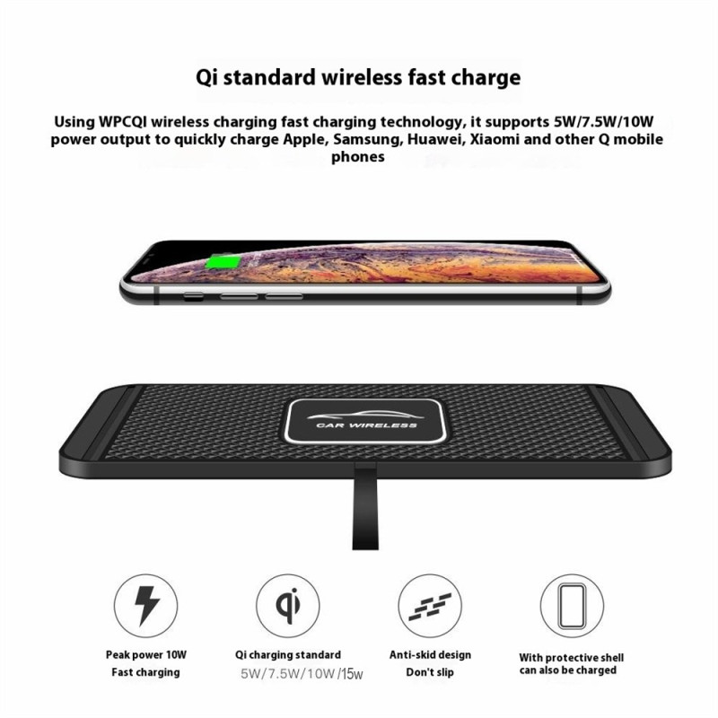 Verwandeln Sie Ihr Armaturenbrett in eine intelligente Ladestation! Dieses kabellose 15-W-Ladegerät bietet dank seiner rutschfesten Silikonoberfläche und der automatischen Erkennung von Metallgegenständen ein schnelles und sicheres Aufladen. Es ist mit allen Qi-Smartphones kompatibel und garantiert Stabilität und optimale Energieeffizienz.