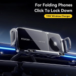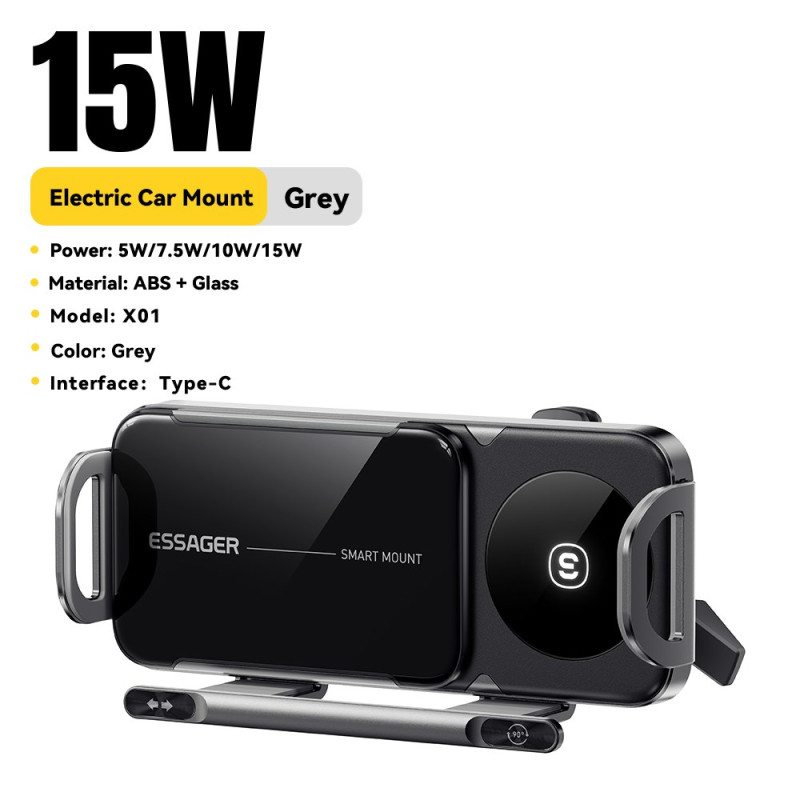 Entdecken Sie den ESSAGER Telefonhalter mit 15W kabellosem Ladegerät. Stabiles dreieckiges Design, einfache Drehung, integrierter 150mAh-Akku für 500 Zyklen. Adlerkrallen-Klemme für eine solide Befestigung am Lüftungsgitter.