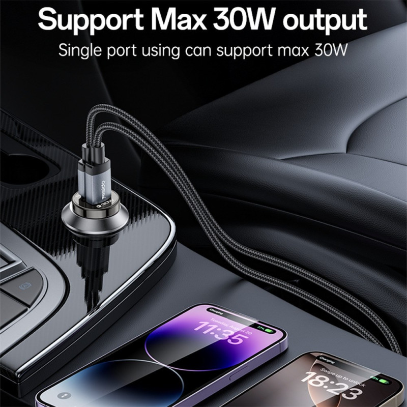 Chargez rapidement vos appareils en déplacement avec le chargeur voiture YESIDO Y72. Doté de deux ports (USB-A et USB-C) offrant jusqu'à 30W de puissance, il supporte les protocoles de charge rapide QC3.0, PD3.0 et PPS. Compatible avec tous les véhicules 12V et 24V. Câble USB-C vers USB-C inclus pour une utilisation immédiate.