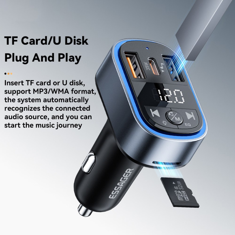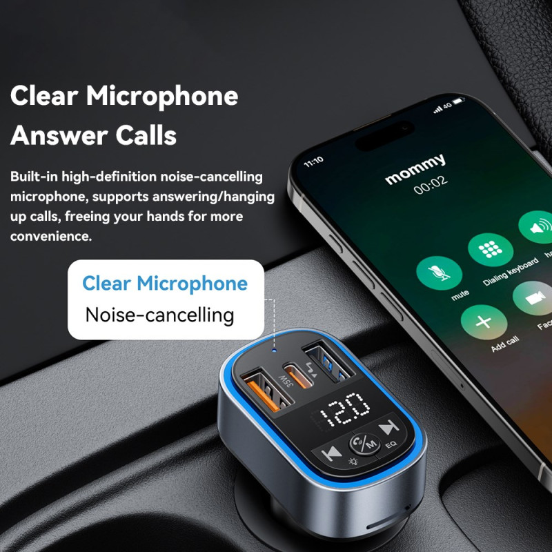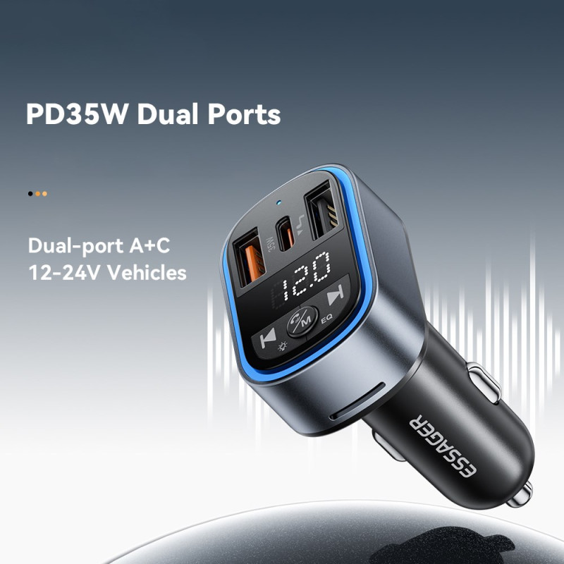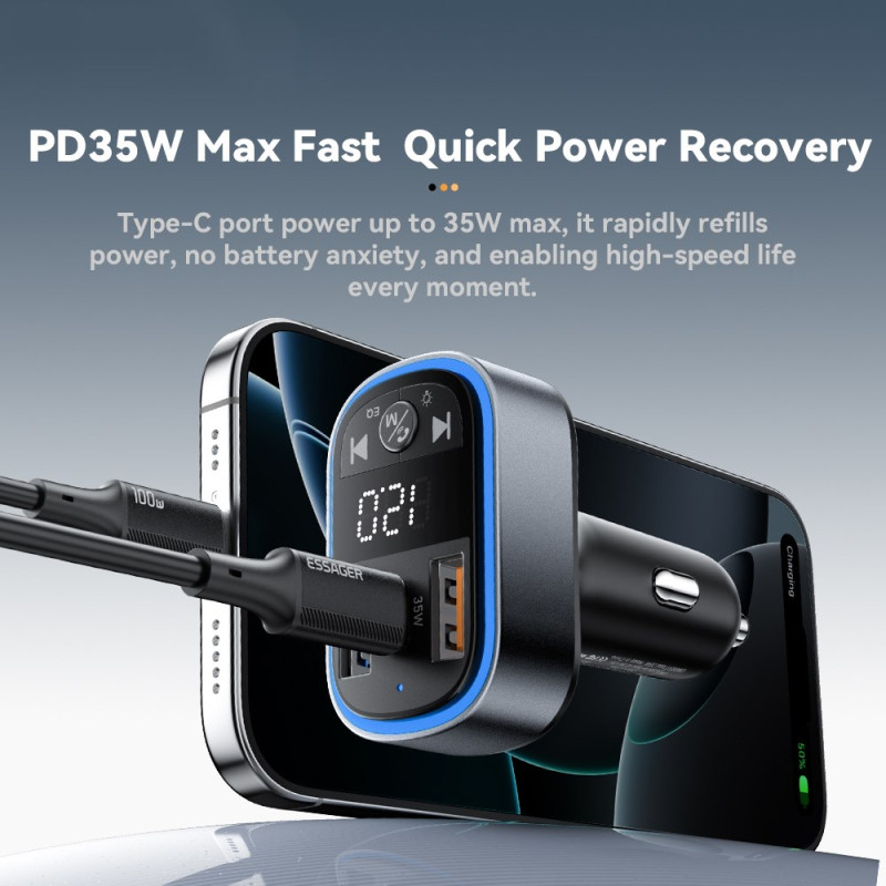 Verwandeln Sie Ihre Fahrt mit diesem intelligenten 35W PD Autoladegerät mit zwei Anschlüssen. Genießen Sie das gleichzeitige ultraschnelle Aufladen, den integrierten FM-Transmitter und Bluetooth 5.3 für einwandfreies kabelloses Audio-Streaming.