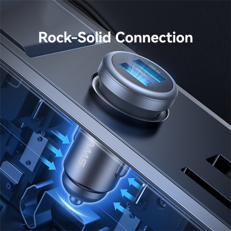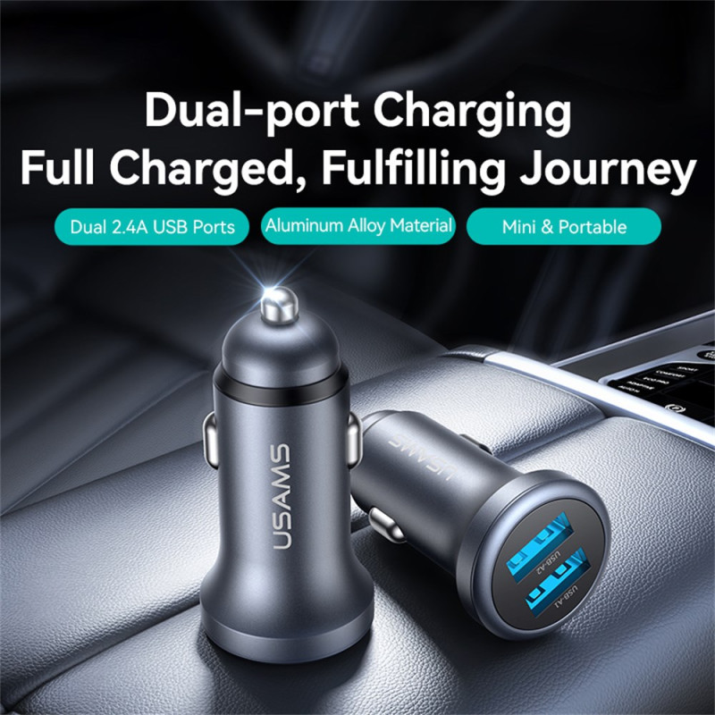 Mit diesem kompakten USAMS-Autoladegerät können Sie Ihre Geräte unterwegs schnell aufladen. Ausgestattet mit zwei USB 2.4A-Anschlüssen können Sie damit mehrere Geräte gleichzeitig aufladen.