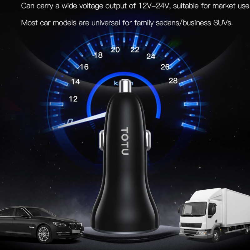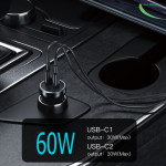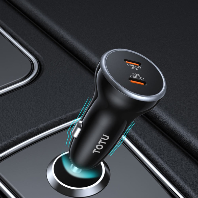 Optimieren Sie Ihre Fahrten mit dem Autoladegerät TOTU CC-6. Mit zwei USB-C-Anschlüssen, die bis zu 60 W Leistung liefern, können Sie schnell zwei Geräte gleichzeitig aufladen. Sein kompaktes Design passt perfekt in Ihr Fahrzeug.