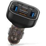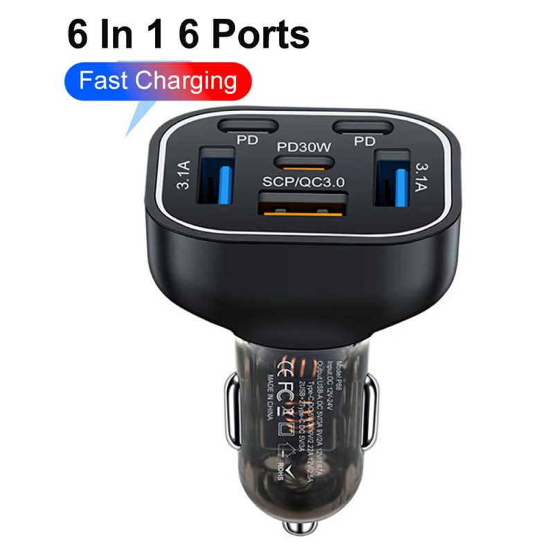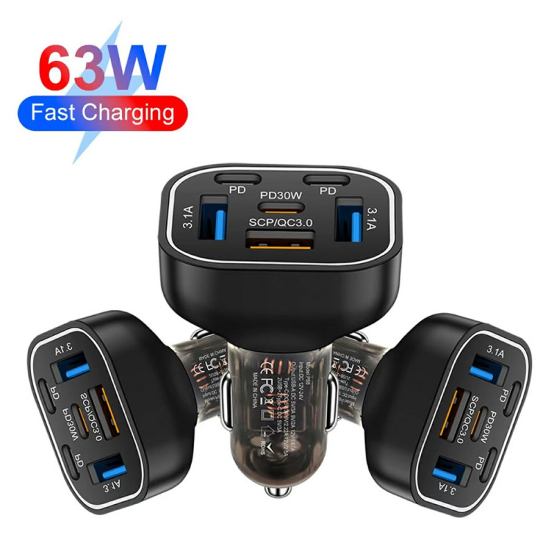 Laden Sie mit diesem kompakten 63-W-Autoladegerät bis zu 6 Geräte gleichzeitig auf. Mit 3 USB- und 3 Typ-C-PD-Anschlüssen bietet es ein schnelles und effizientes Aufladen und schont dabei Ihre Geräte. Sein elegantes Design mit farbigen LEDs in 7 Farben verleiht ihm eine einzigartige Note.