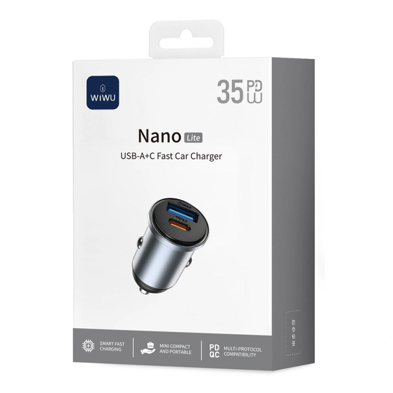 Autoladegerät der nächsten Generation mit kompaktem und unauffälligem Design. Genießen Sie die 35W-Schnellladung, die Ihr Smartphone in nur 30 Minuten auf bis zu 80% auflädt. Fortschrittliche PPS/PD-Technologie mit USB-C 35W- und USB-A 30W-Anschluss.